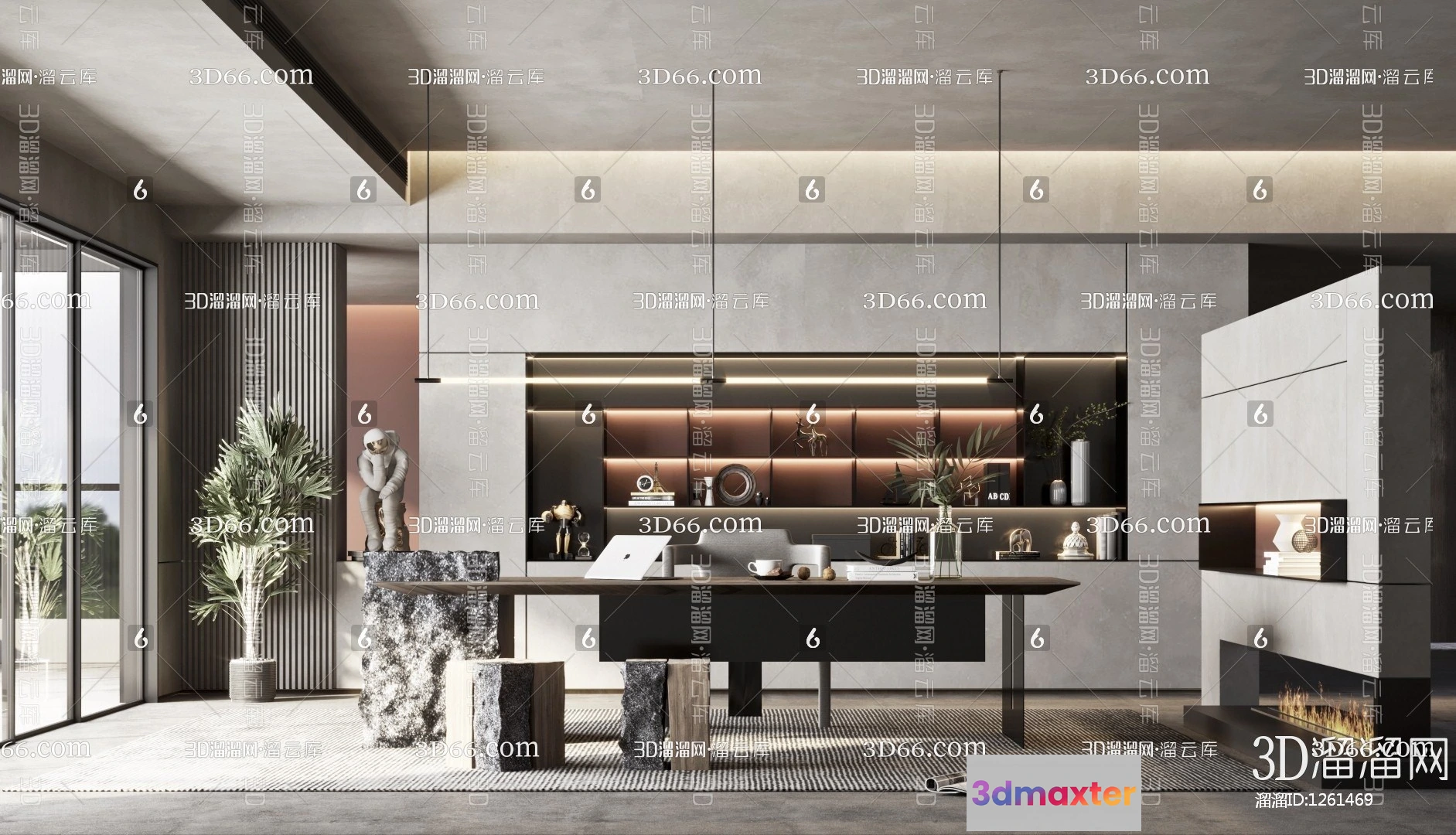 3D Models / 3D Scenes / Interior / Office Home / Study Room 3D Scenes – 0809