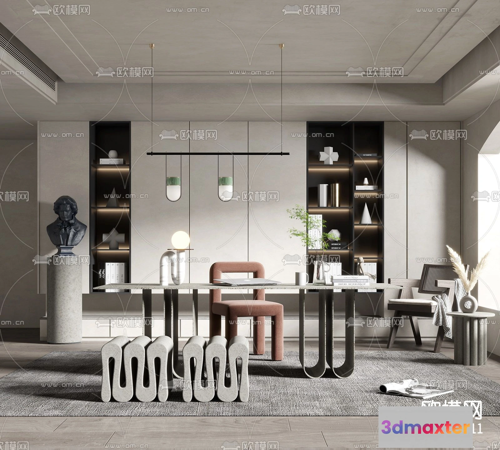 3D Models / 3D Scenes / Interior / Office Home / Study Room 3D Scenes – 0816