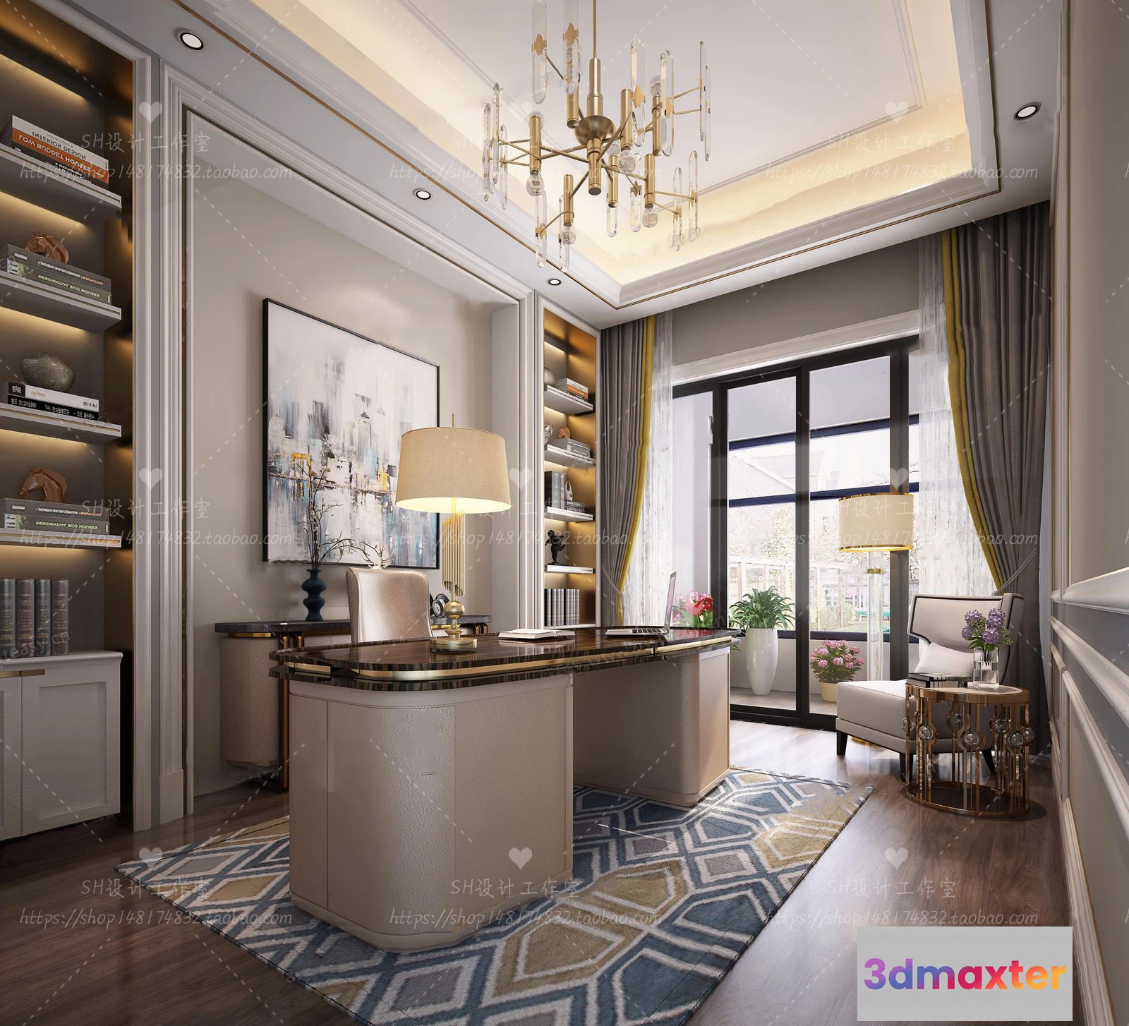 3D Models / 3D Scenes / Interior / Office Home / STUDY ROOM 3D SCENES – VRAY RENDER – 13