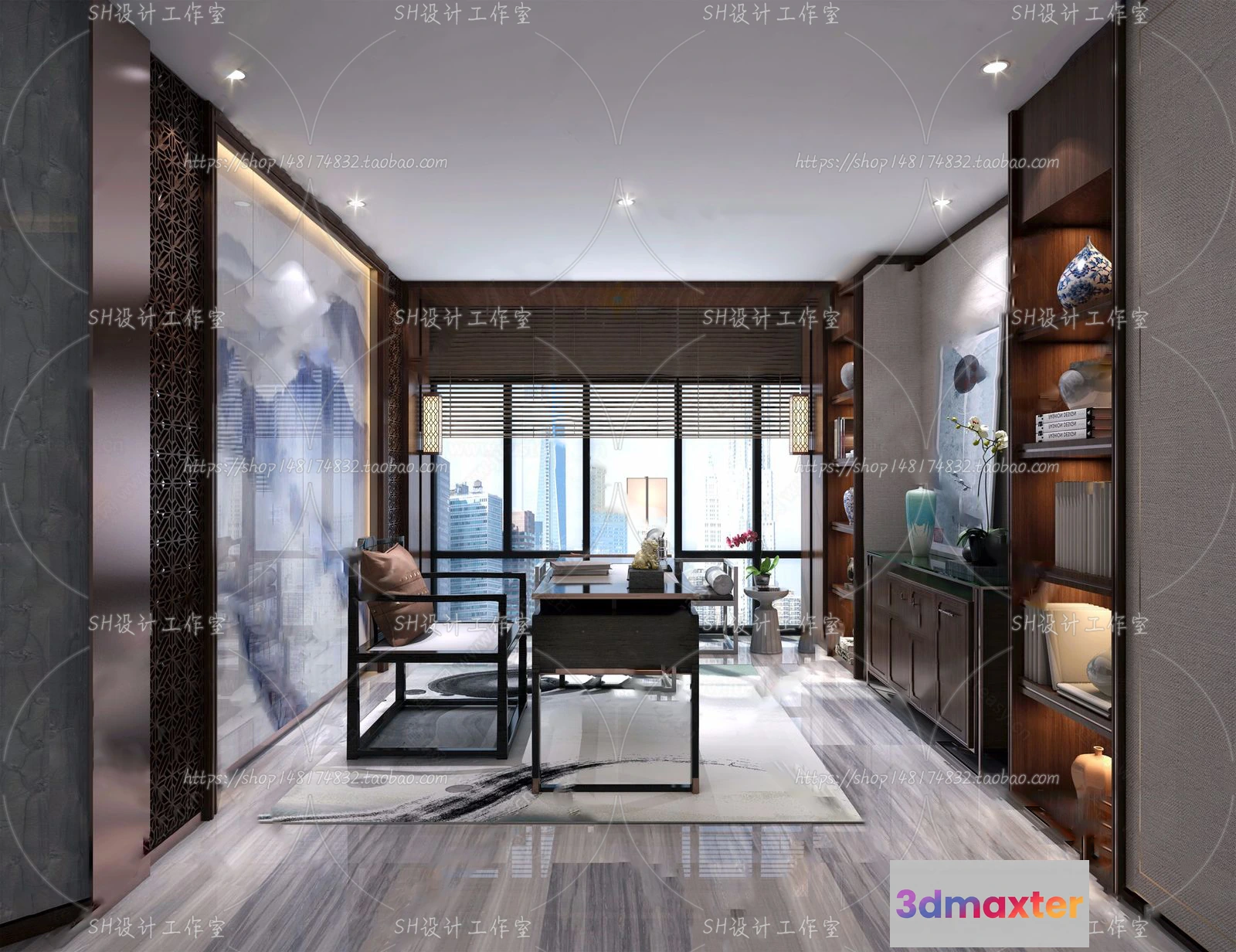 3D Models / 3D Scenes / Interior / Office Home / STUDY ROOM 3D SCENES – VRAY RENDER – 133