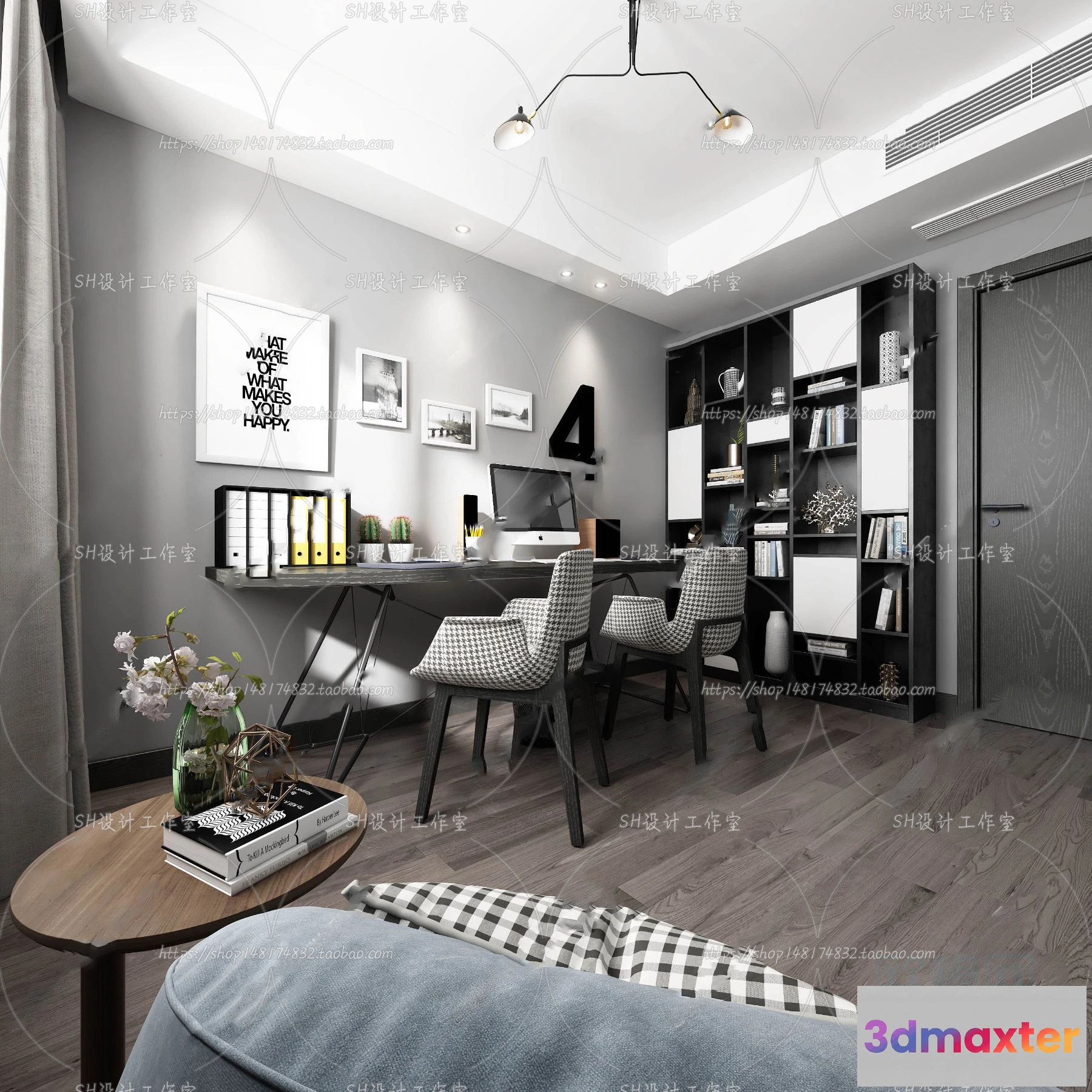 3D Models / 3D Scenes / Interior / Office Home / STUDY ROOM 3D SCENES – VRAY RENDER – 183