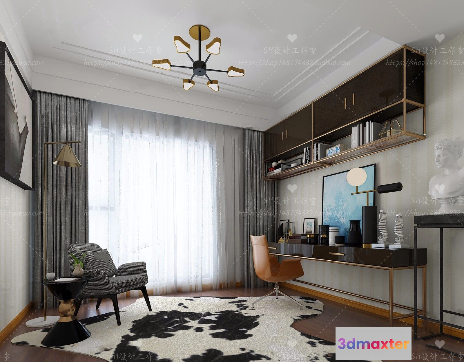 3D Models / 3D Scenes / Interior / Office Home / STUDY ROOM 3D SCENES – VRAY RENDER – 19