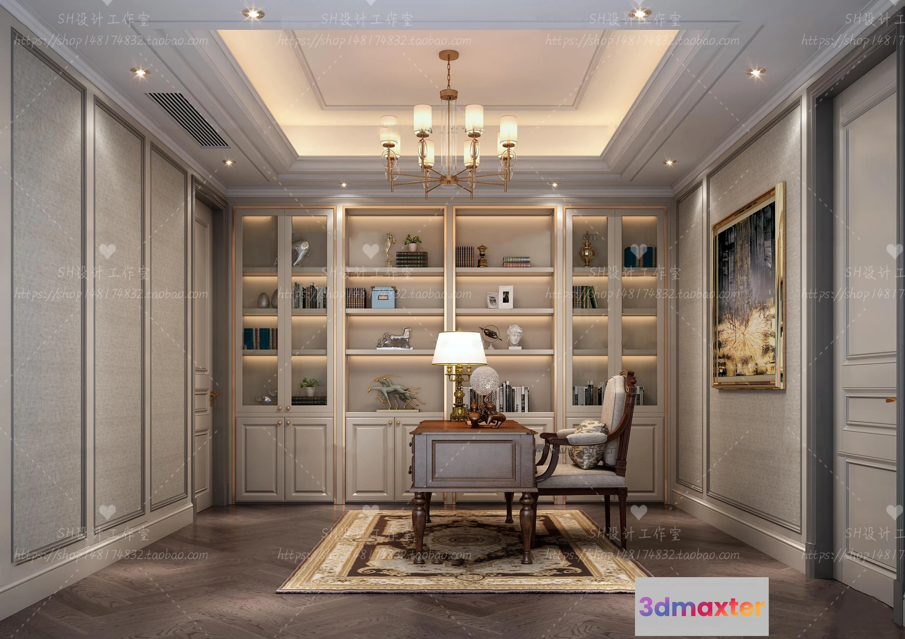 3D Models / 3D Scenes / Interior / Office Home / STUDY ROOM 3D SCENES – VRAY RENDER – 28