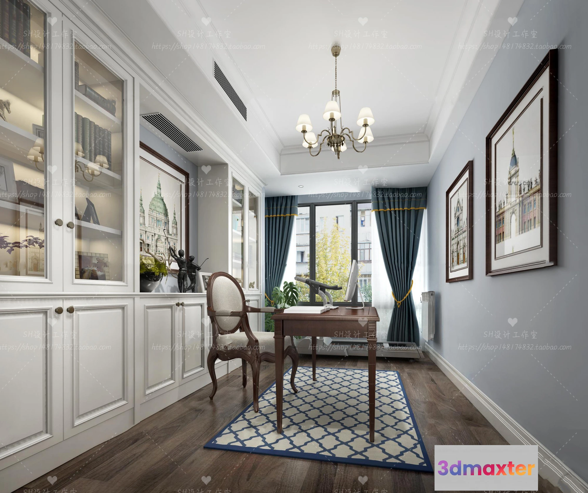 3D Models / 3D Scenes / Interior / Office Home / STUDY ROOM 3D SCENES – VRAY RENDER – 30