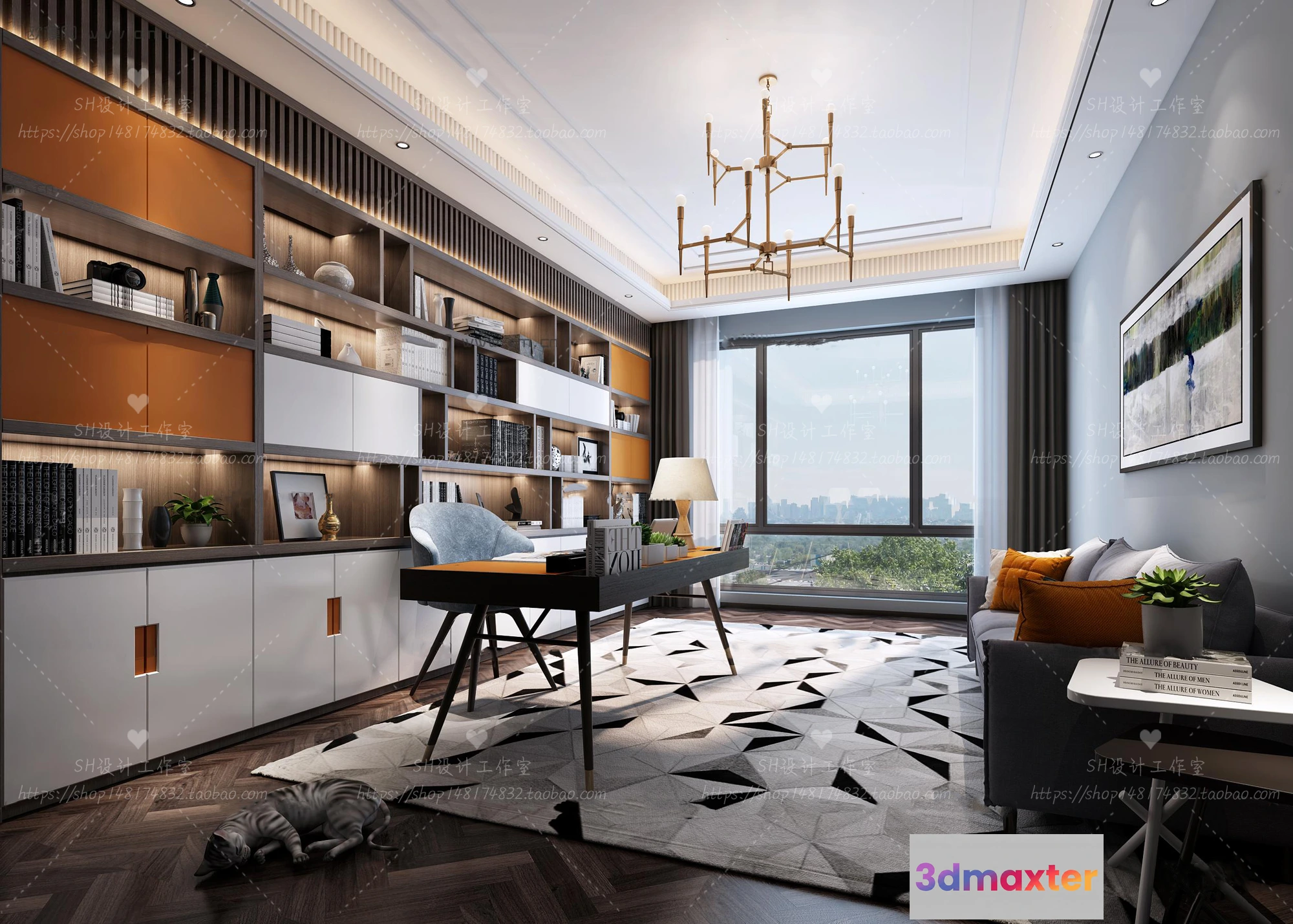 3D Models / 3D Scenes / Interior / Office Home / STUDY ROOM 3D SCENES – VRAY RENDER – 43
