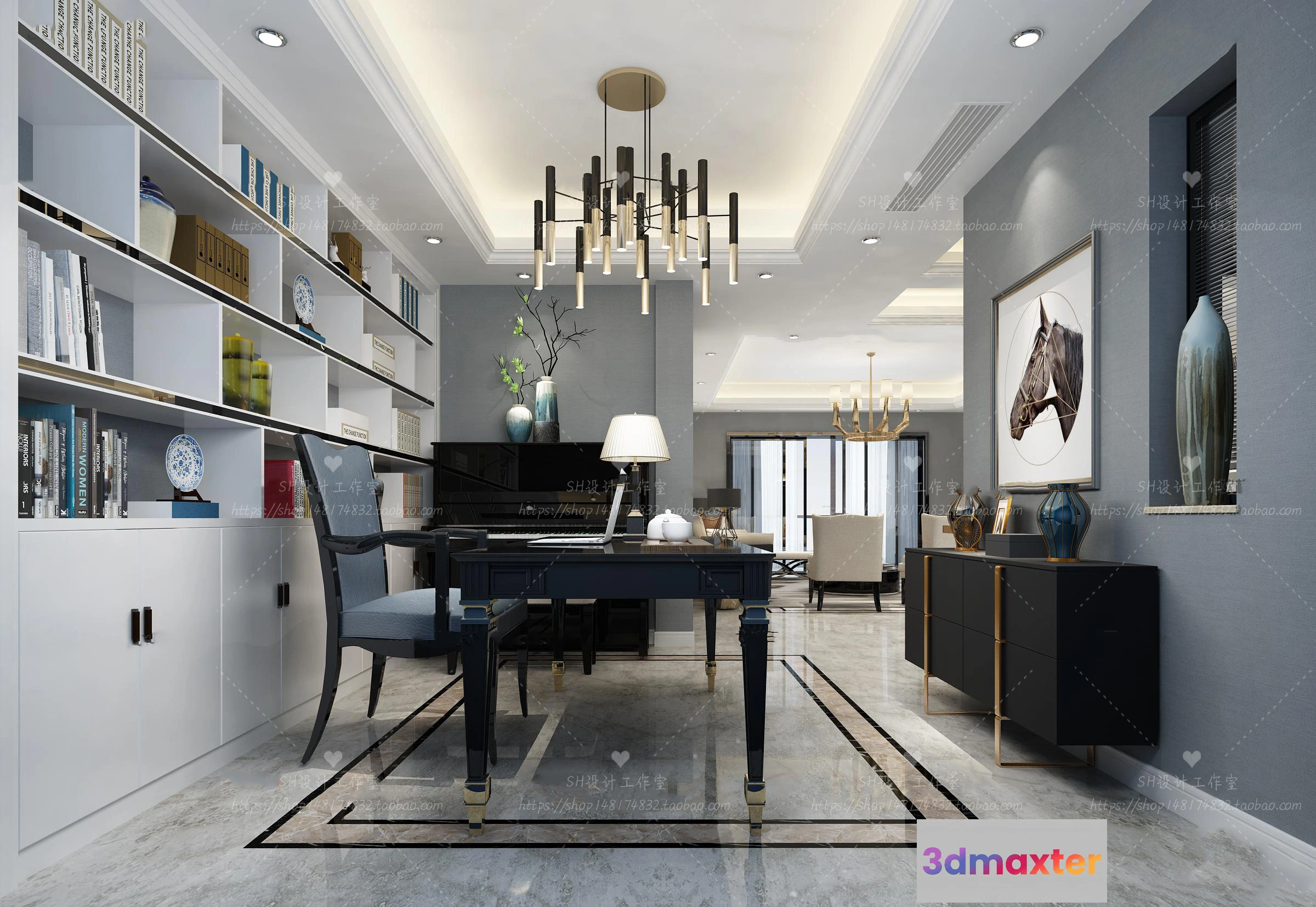 3D Models / 3D Scenes / Interior / Office Home / STUDY ROOM 3D SCENES – VRAY RENDER – 44
