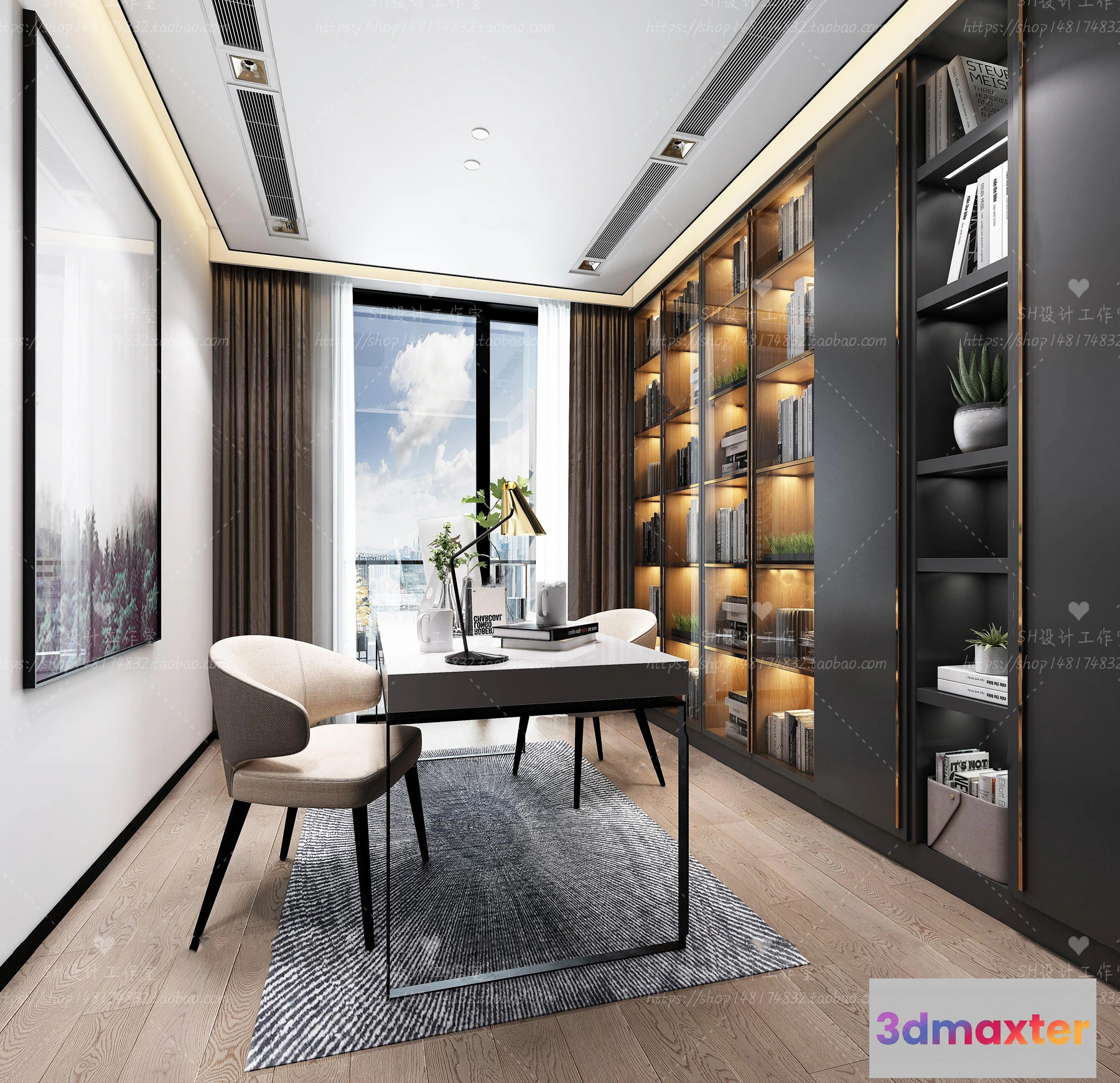 3D Models / 3D Scenes / Interior / Office Home / STUDY ROOM 3D SCENES – VRAY RENDER – 49