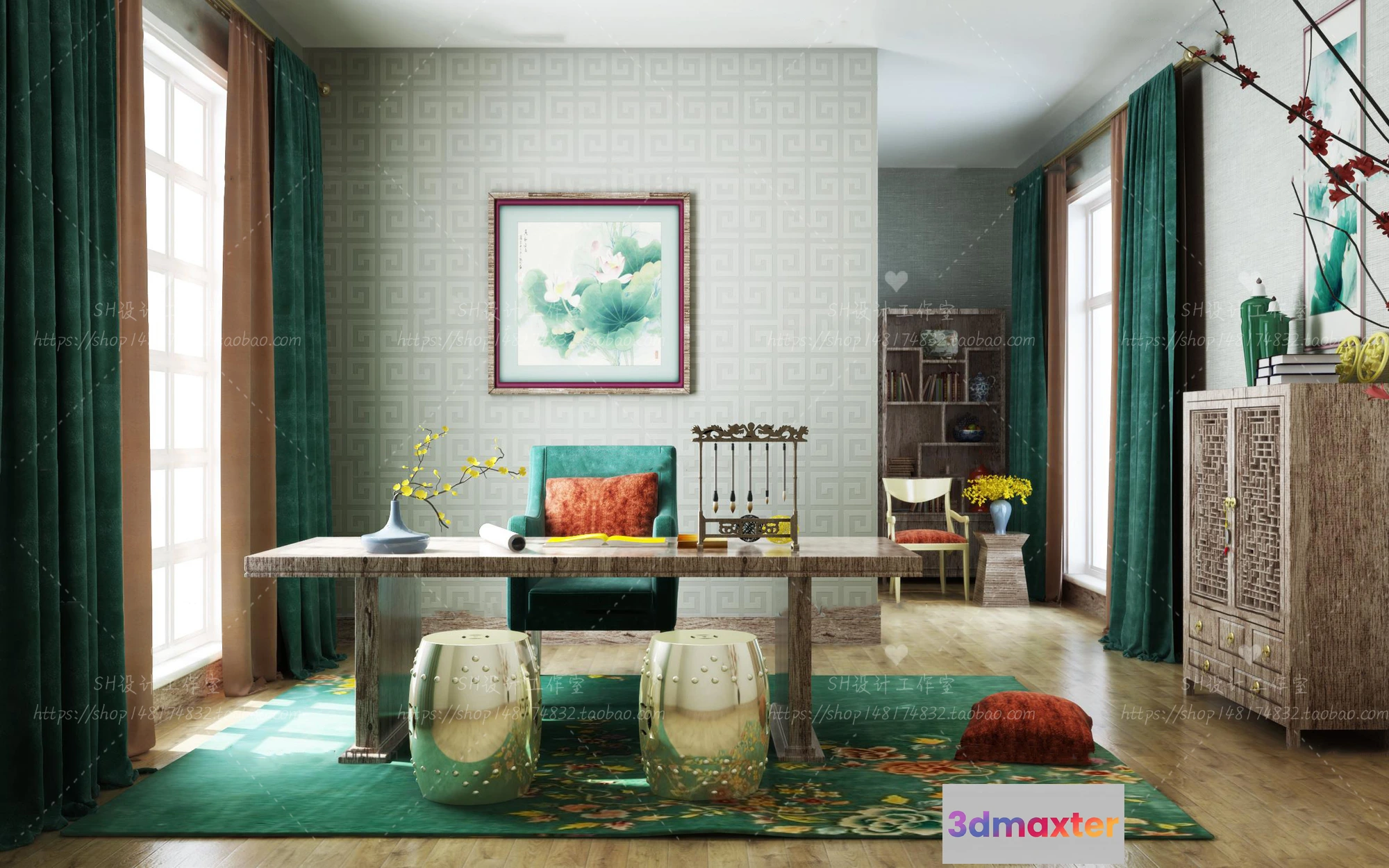 3D Models / 3D Scenes / Interior / Office Home / STUDY ROOM 3D SCENES – VRAY RENDER – 79