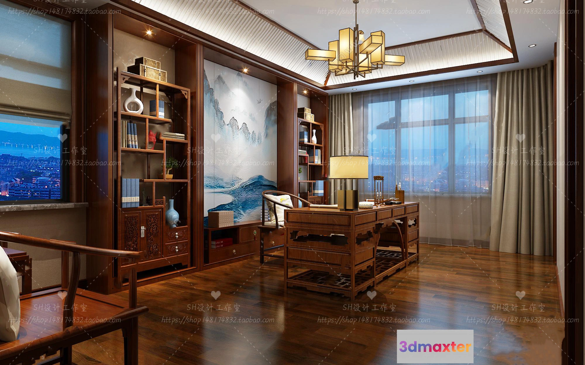 3D Models / 3D Scenes / Interior / Office Home / STUDY ROOM 3D SCENES – VRAY RENDER – 83