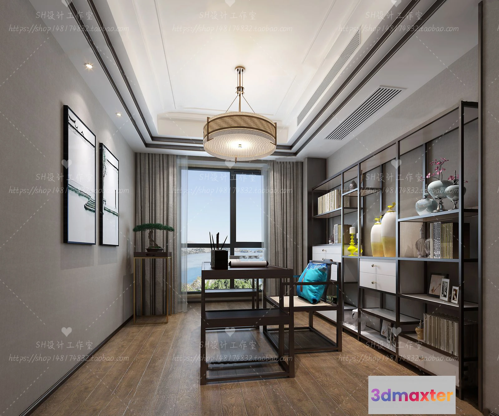 3D Models / 3D Scenes / Interior / Office Home / STUDY ROOM 3D SCENES – VRAY RENDER – 88