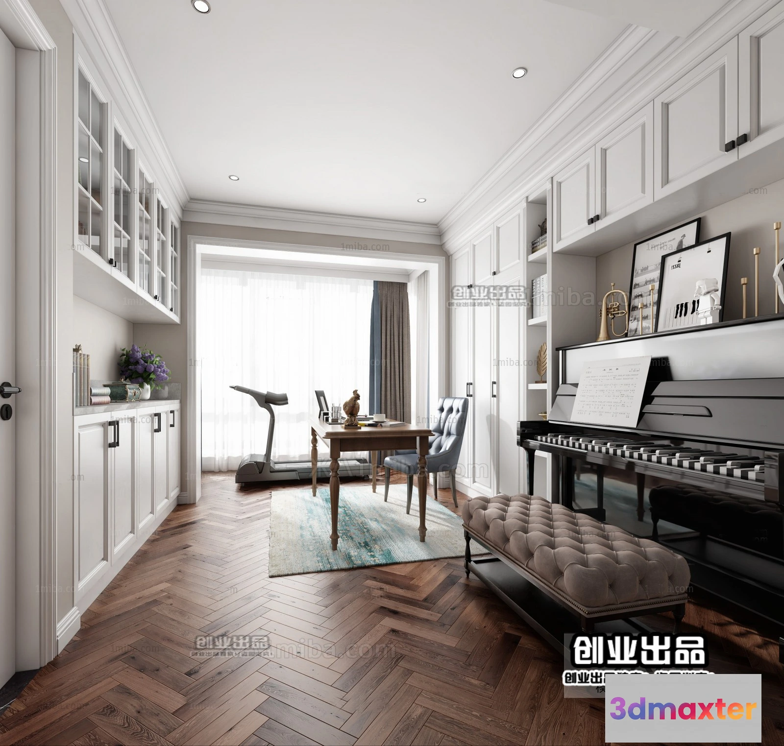 3D Models / 3D Scenes / Interior / Office Home / Study Space 3D Interior Scene – American Style – 010 3D Max