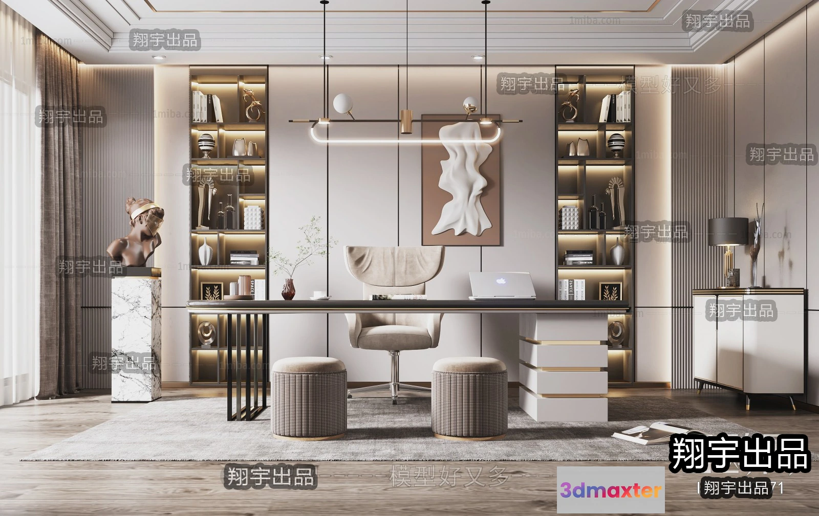 3D Models / 3D Scenes / Interior / Office Home / Study Space – Modern Style Interior 3D Scenes – 003 3D Max