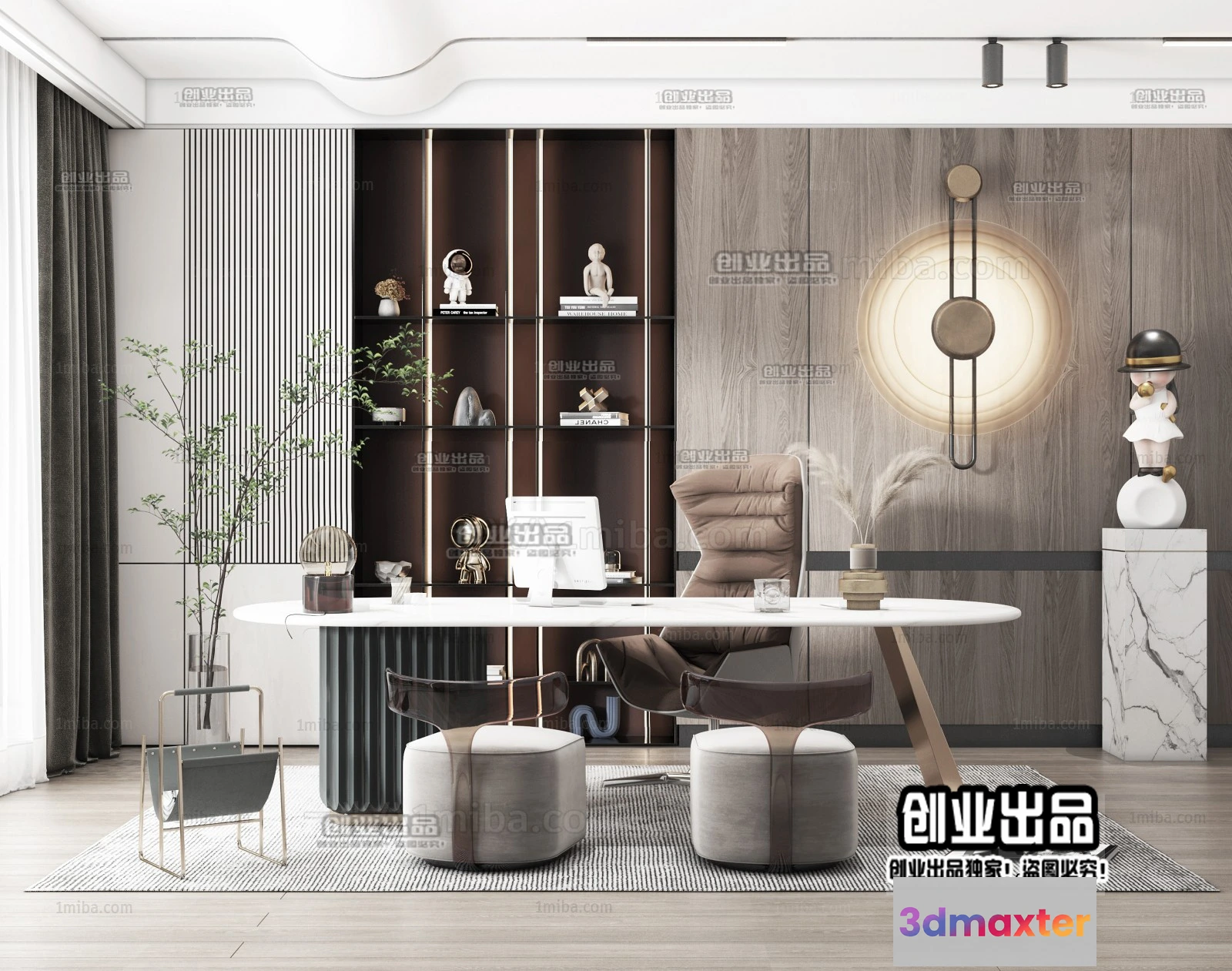 3D Models / 3D Scenes / Interior / Office Home / Study Space – Modern Style Interior 3D Scenes – 007 3D Max