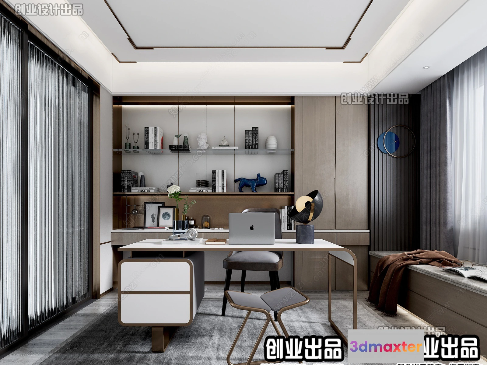 3D Models / 3D Scenes / Interior / Office Home / Study Space – Modern Style Interior 3D Scenes – 014 3D Max