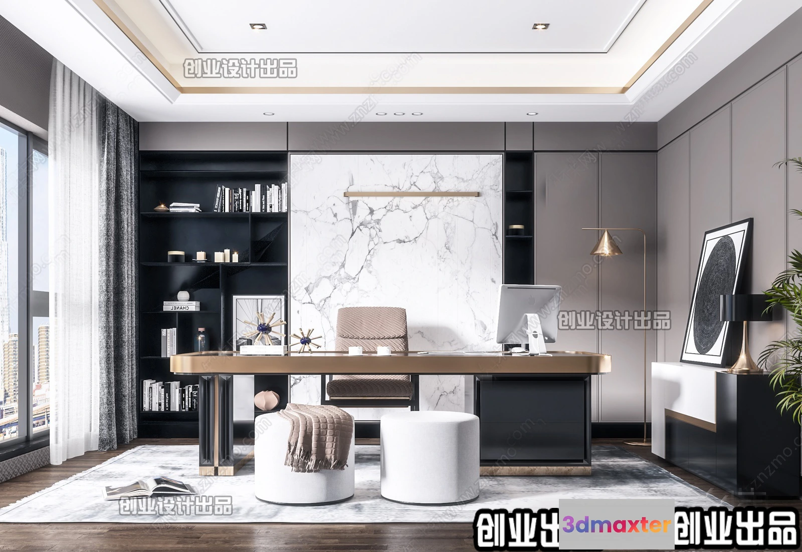 3D Models / 3D Scenes / Interior / Office Home / Study Space – Modern Style Interior 3D Scenes – 015 3D Max