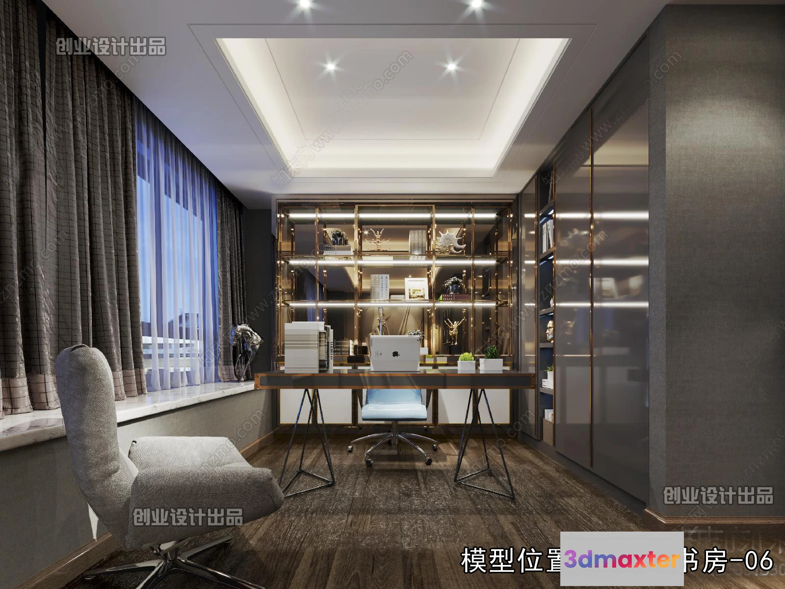 3D Models / 3D Scenes / Interior / Office Home / Study Space – Modern Style Interior 3D Scenes – 019 3D Max