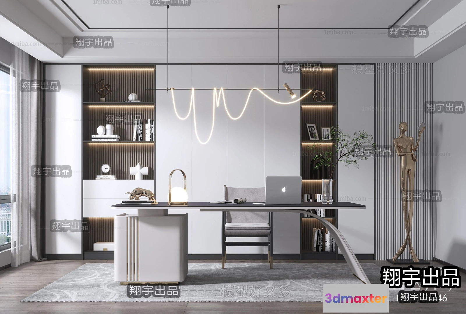 3D Models / 3D Scenes / Interior / Office Home / Study Space – Modern Style Interior 3D Scenes – 021 3D Max