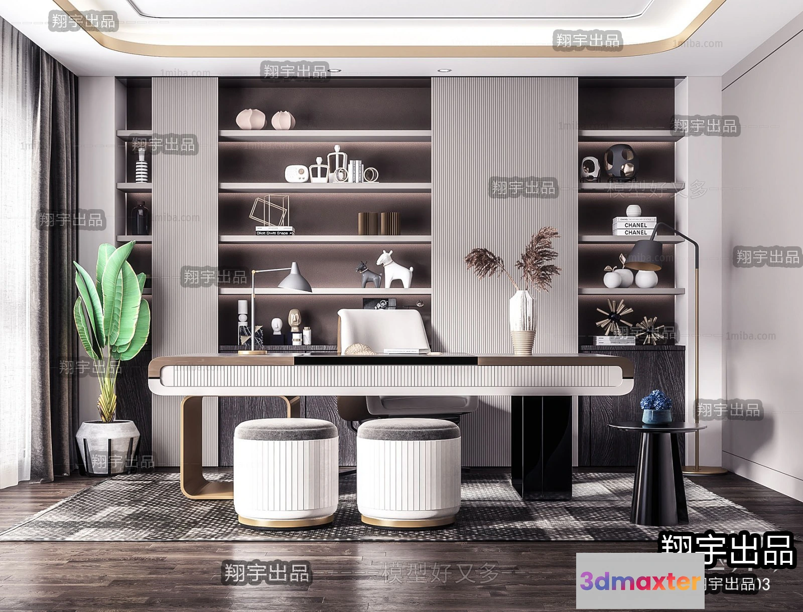 3D Models / 3D Scenes / Interior / Office Home / Study Space – Modern Style Interior 3D Scenes – 026 3D Max