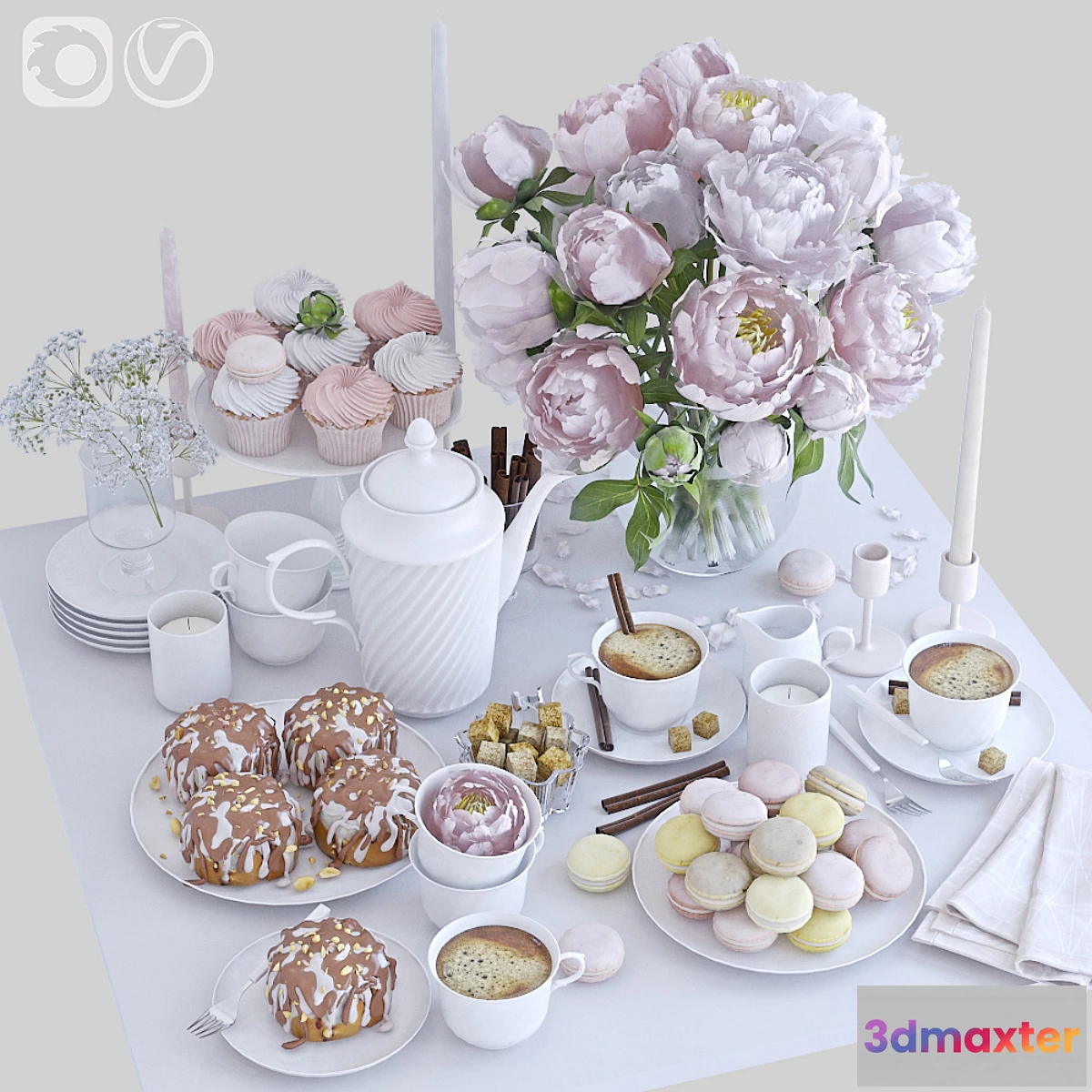 The model is made under anti-aliasing (Turbosmooth is disabled). All objects in the scene are grouped logically. The display of textures in the viewport is disabled. Wax in all the candles made sss-material to speed up the rendering can be changed to a material easier