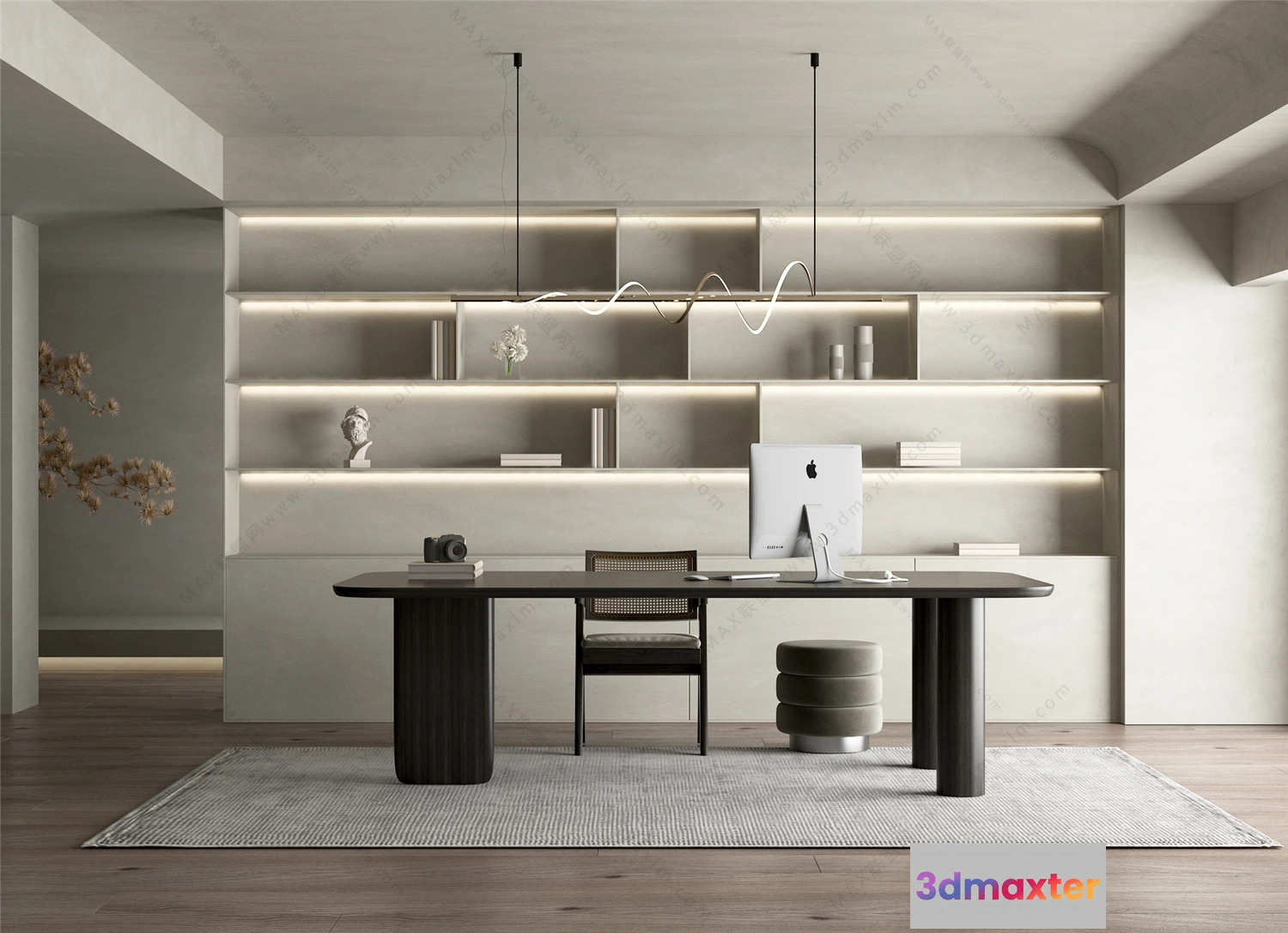 3D Models / 3D Scenes / Interior / Office Home / Tearoom and Study 3D Interior Scene Model – Wabi Sabi Style – 005 3D Max
