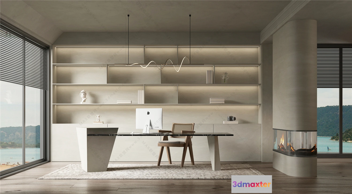 3D Models / 3D Scenes / Interior / Office Home / Tearoom and Study 3D Interior Scene Model – Wabi Sabi Style – 006 3D Max