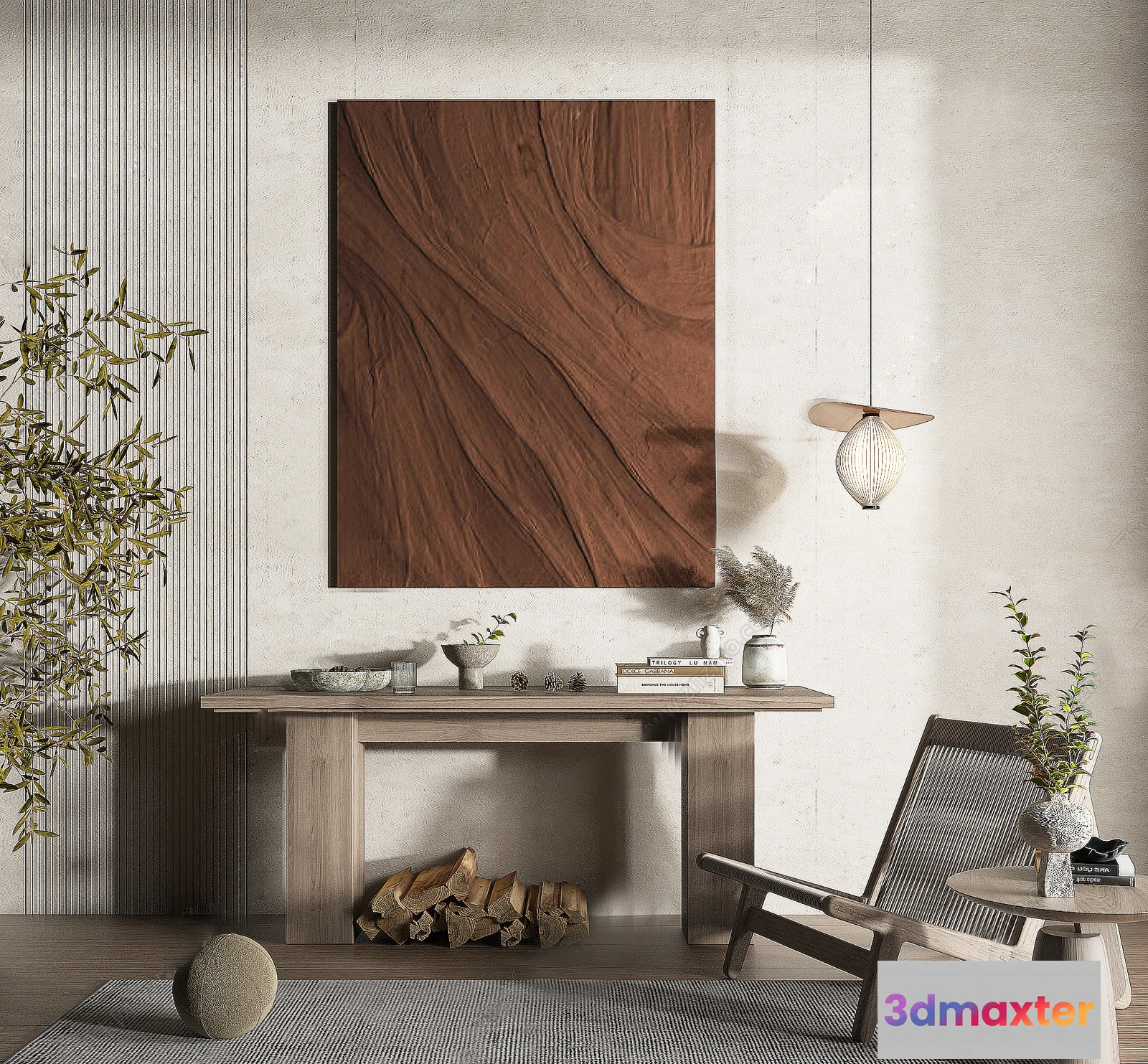 3D Models / 3D Scenes / Interior / Office Home / Tearoom and Study 3D Interior Scene Model – Wabi Sabi Style – 009 3D Max