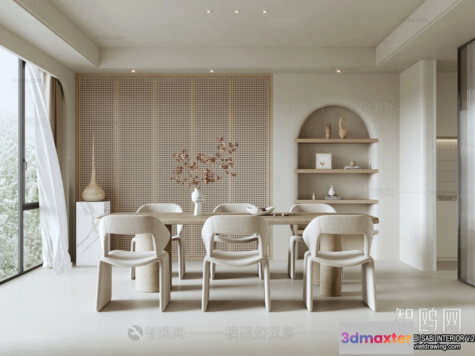 Tearoom and Study 3D Interior Scene Model – Wabi Sabi Style – 026 3D Max