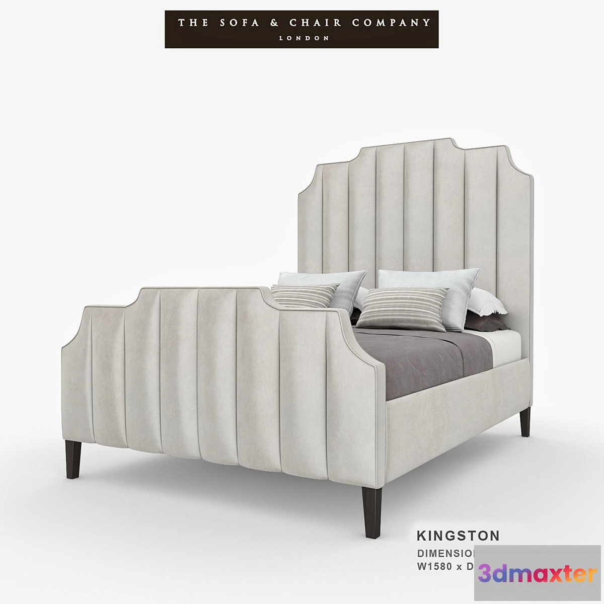 Dimensions: W1580 x L2160 x H1800 mm. The model is based on the original manufacturer dimensions. Materials and groups are named the same as the model. Instance geometry one multi-submaterial for model for easy change or setup. Object at 0.0.0 clean and light scene. http://www.thesofaandchair.co.uk/collection/beds-headboards/9631-kingston