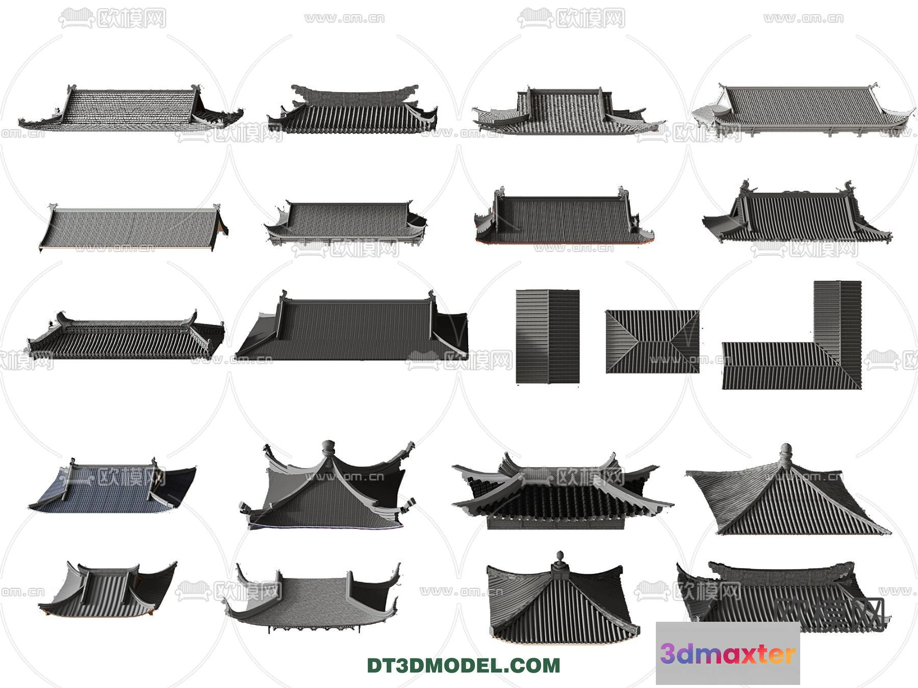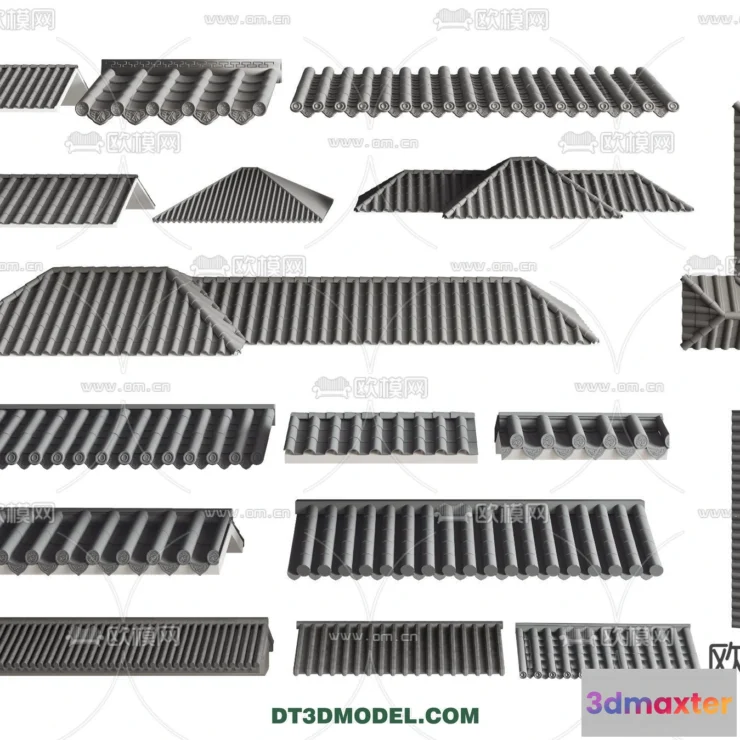 3D Models / Materials / Roof Tile / Tile Roof 3D Models – Chinese Style – 029 3D Max