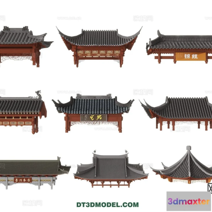 3D Models / Materials / Roof Tile / Tile Roof 3D Models – Chinese Style – 056 3D Max