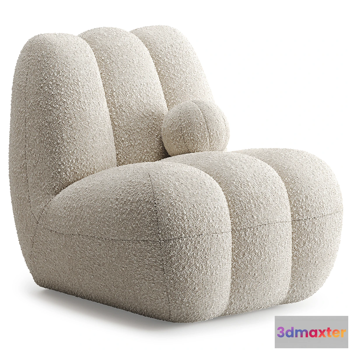 A Tribute to 70s futuristic design and space age Toe is a lounge chair with expressive aesthetics and high seating comfort. Characterized by a sculptural approach to furniture design the Toe Chair has a thick fluted upholstery running from seat to back creating a linear and voluminous shape. The open chair form gives a free and easy seating experience while the special combination of different kinds of foam ensures an overall high seating comfort. Toe Chair comes in off-white boucle fabric.