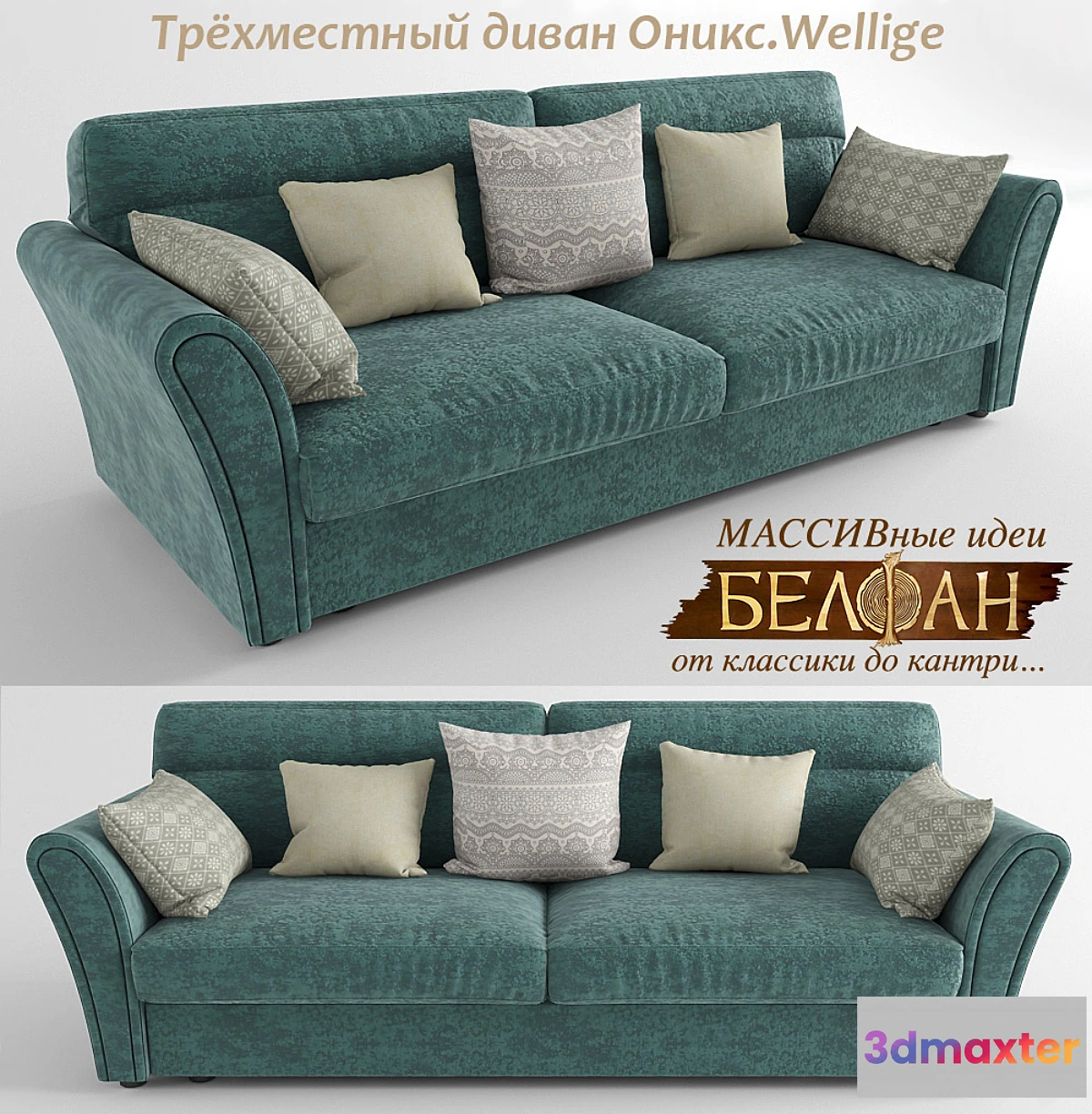 Triple sofa “Oniks.Wellige” from “Belfan” Belarusian furniture collection. Discreet and sleek design of the sofa allows you to fit it in the interiors of different styles. Dimensions: width – 2570mm height – 950mm depth – 1070mm. Pillows and textures included. I would be glad if it is useful)