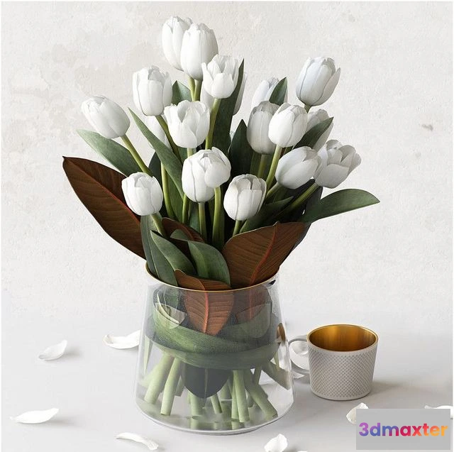 Decorative set with tulips a cup of coffee and pasta macaroni) Polys: 428130 Verts: 424399