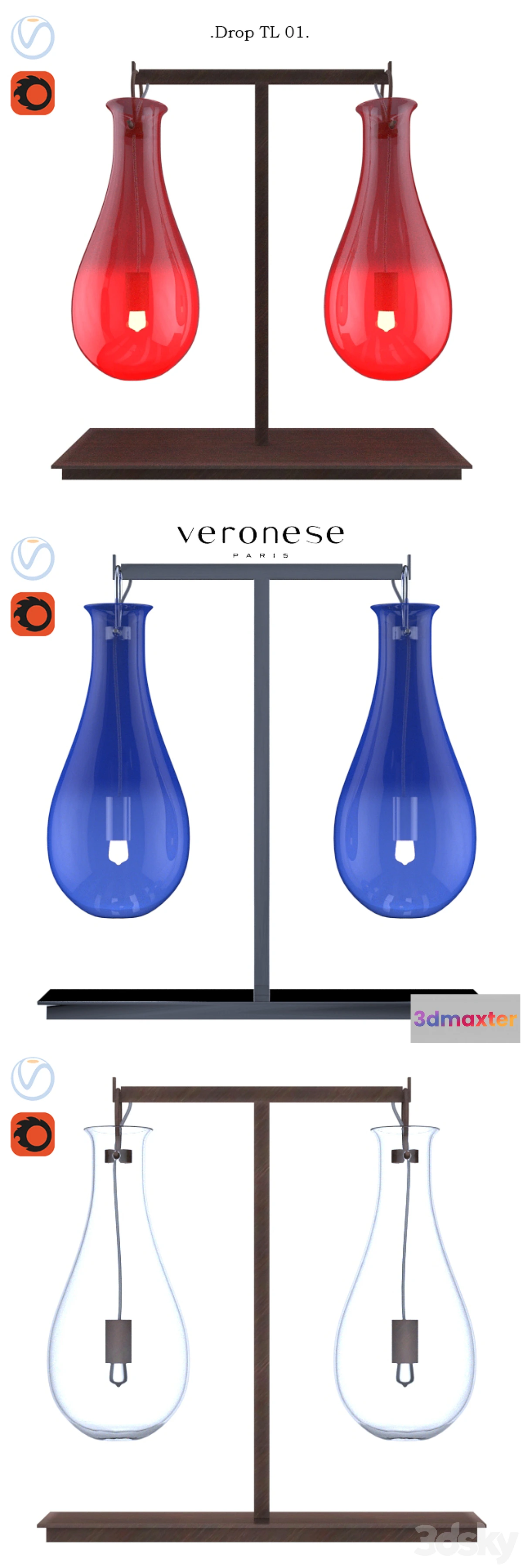 Table lamp is powered by Veronese a collection Drop. The model is made for Vray and Corona. The archive files and .fbx .max files for both the render engines. The model is presented in 12 colors and two colors lampshades fittings. To change the material enough to change the modifier applied to the object lampshades and fittings. Each of the materials named logical. Materials differ in translucent lampshades and the level of reflection as intended by the manufacturer. Model grouped at the origin and logica