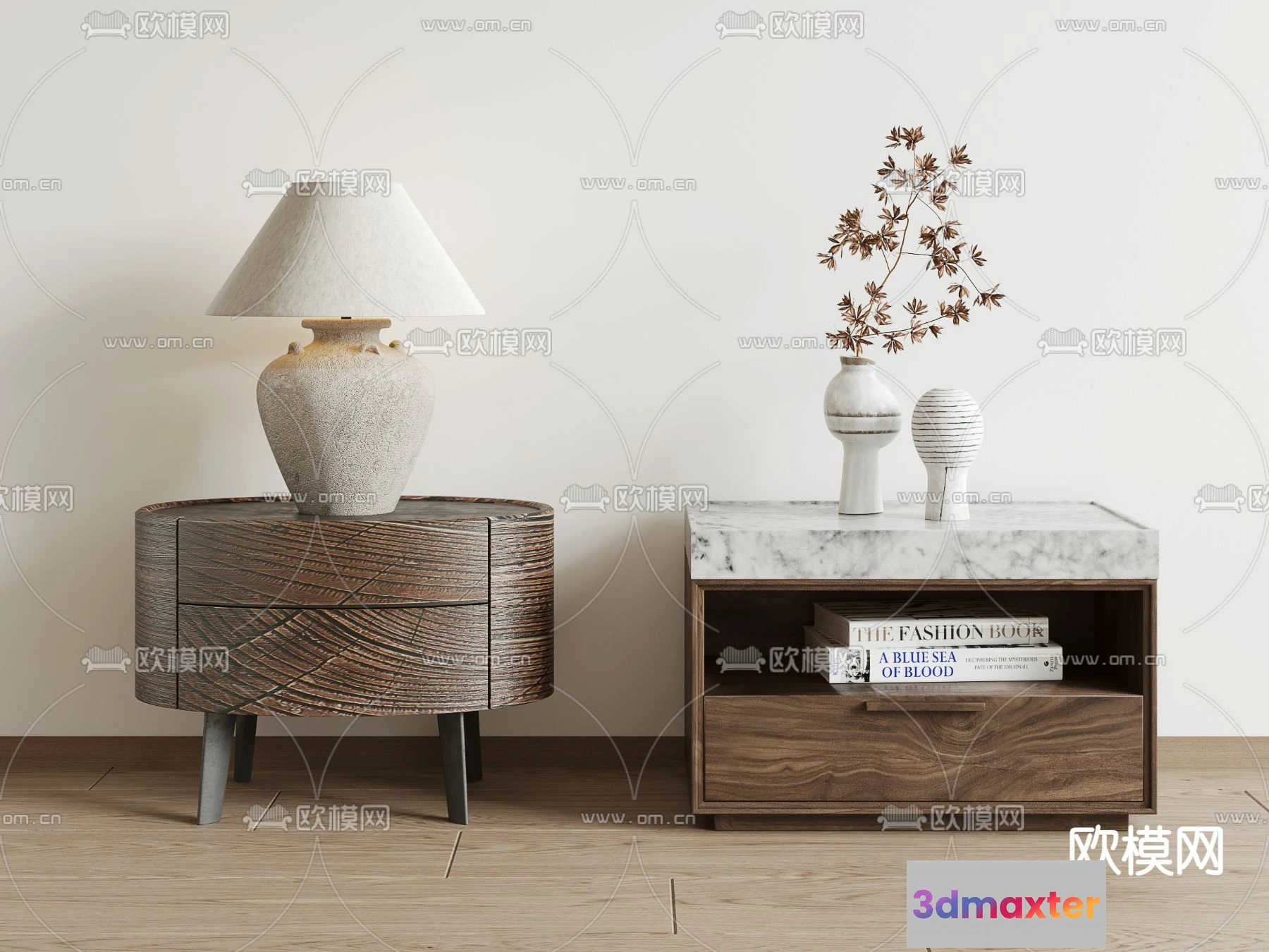 3D Models / 3D Scenes / Interior / Bedroom / WABI SABI STYLE 3D MODELS – BEDSIDE TABLES – 0002