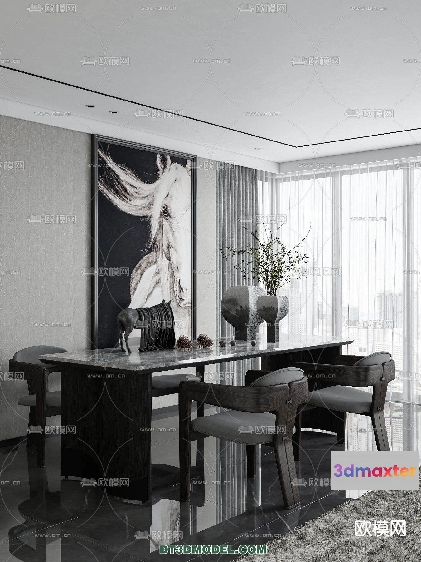3D Models / 3D Scenes / Interior / Dining Room / WABI SABI STYLE 3D MODELS – DINING TABLE – 0001