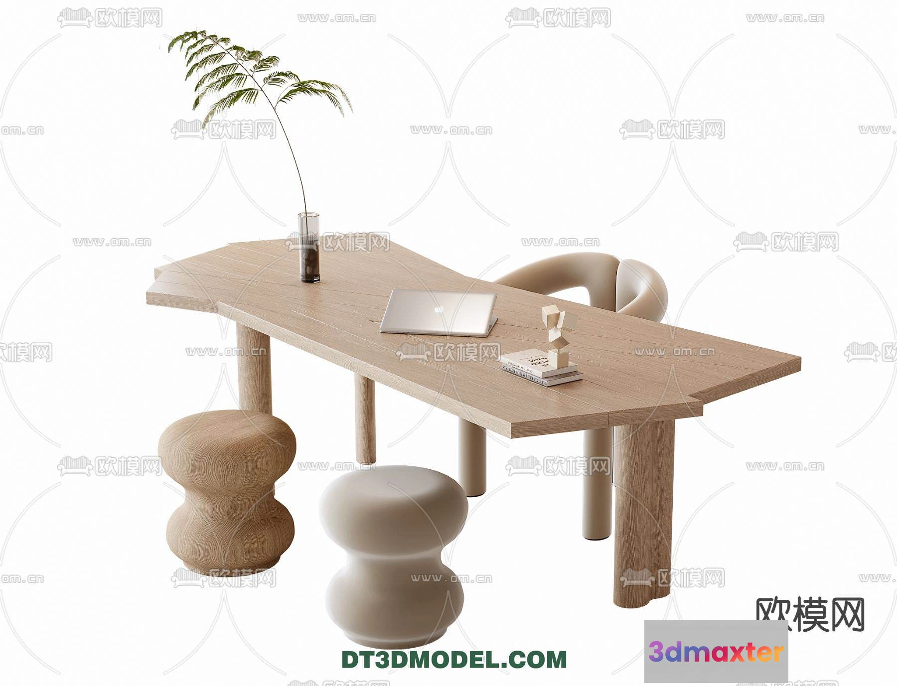 3D Models / 3D Scenes / Interior / Dining Room / WABI SABI STYLE 3D MODELS – DINING TABLE – 0072