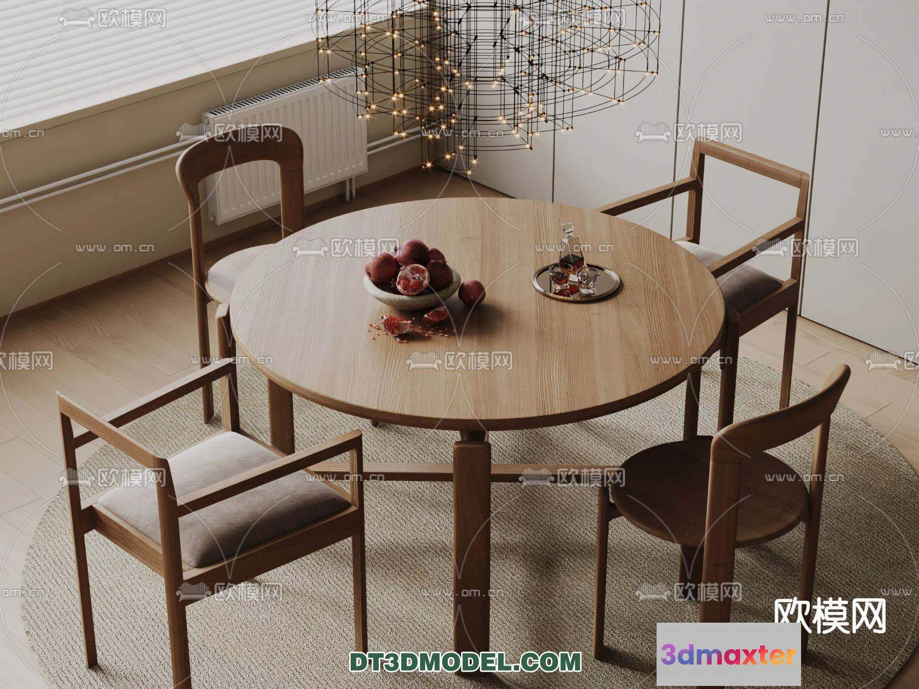 3D Models / 3D Scenes / Interior / Dining Room / WABI SABI STYLE 3D MODELS – DINING TABLE – 0076