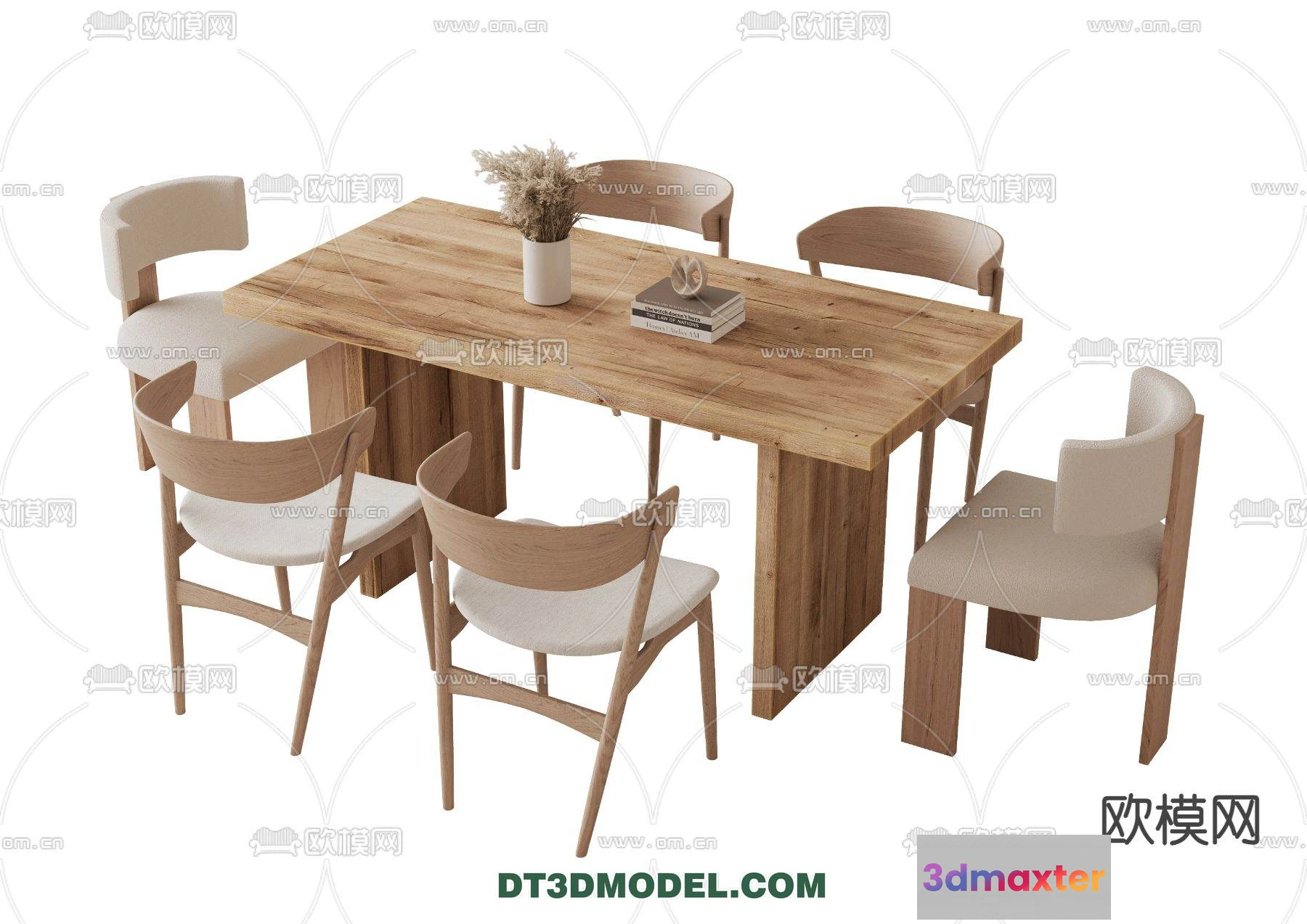 3D Models / 3D Scenes / Interior / Dining Room / WABI SABI STYLE 3D MODELS – DINING TABLE – 0092