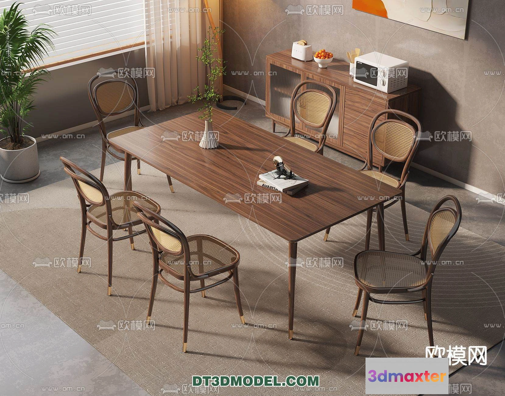 3D Models / 3D Scenes / Interior / Dining Room / WABI SABI STYLE 3D MODELS – DINING TABLE – 0098