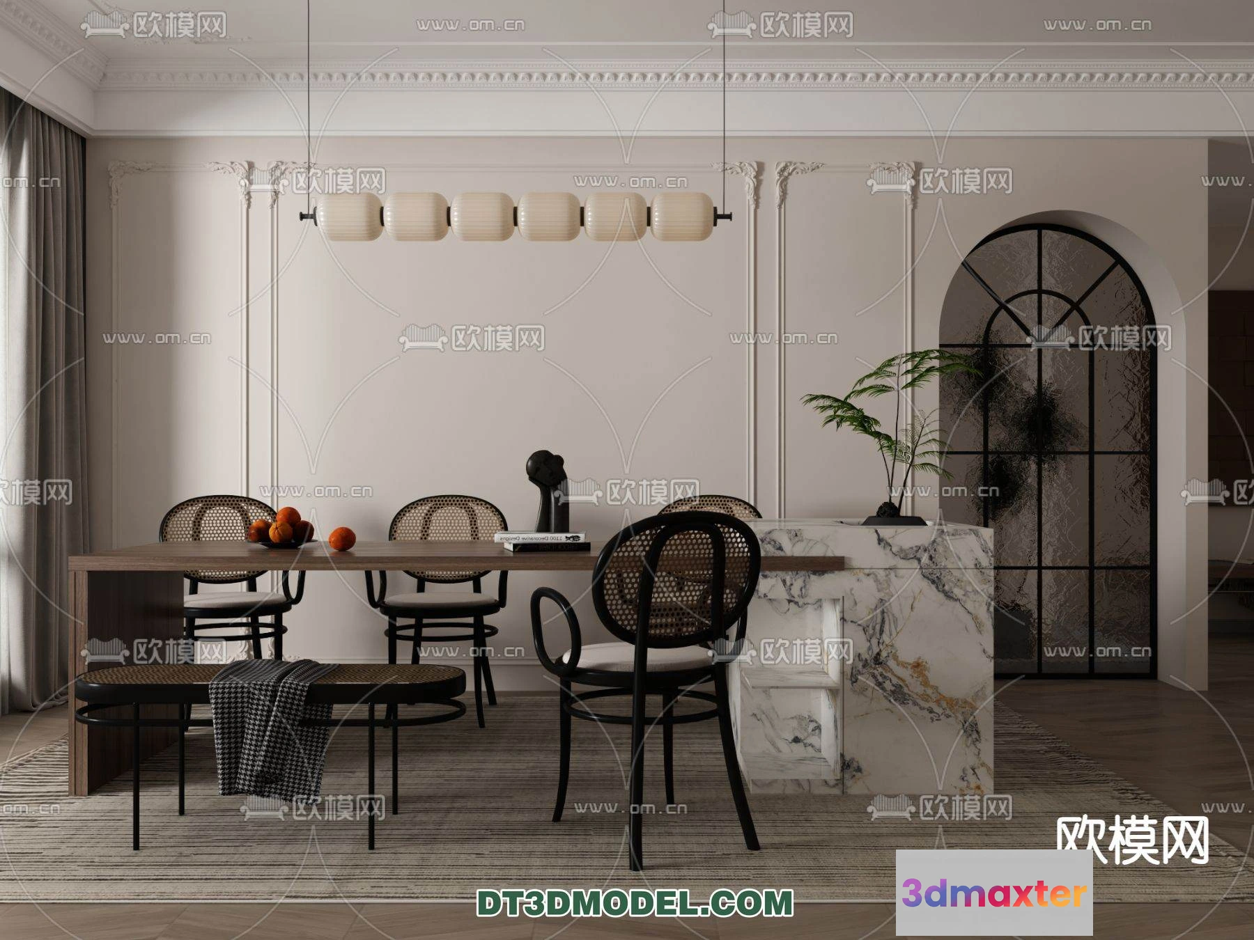 3D Models / 3D Scenes / Interior / Dining Room / WABI SABI STYLE 3D MODELS – DINING TABLE – 0120
