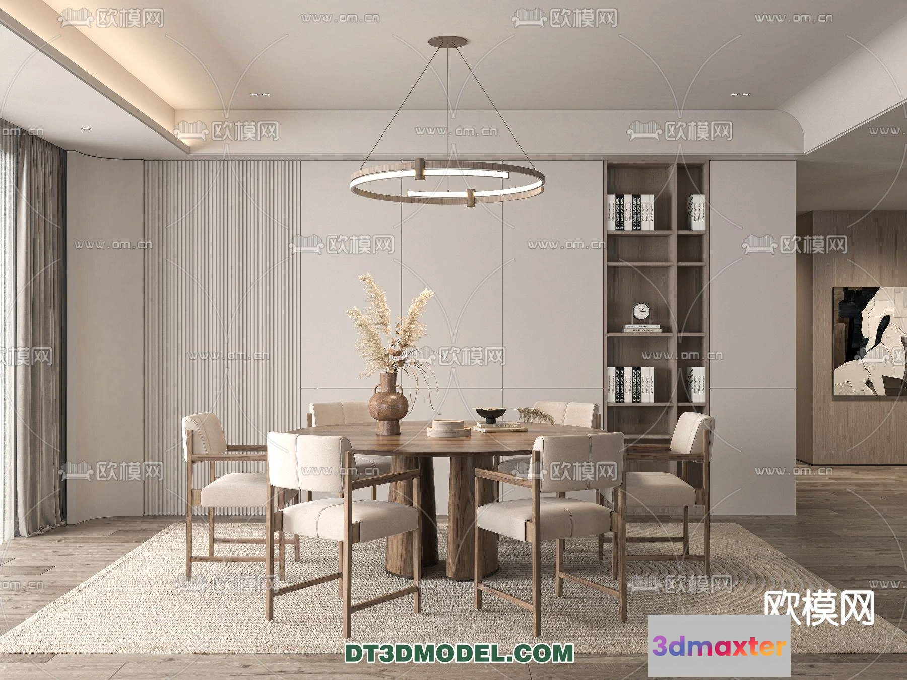 3D Models / 3D Scenes / Interior / Dining Room / WABI SABI STYLE 3D MODELS – DINING TABLE – 0121