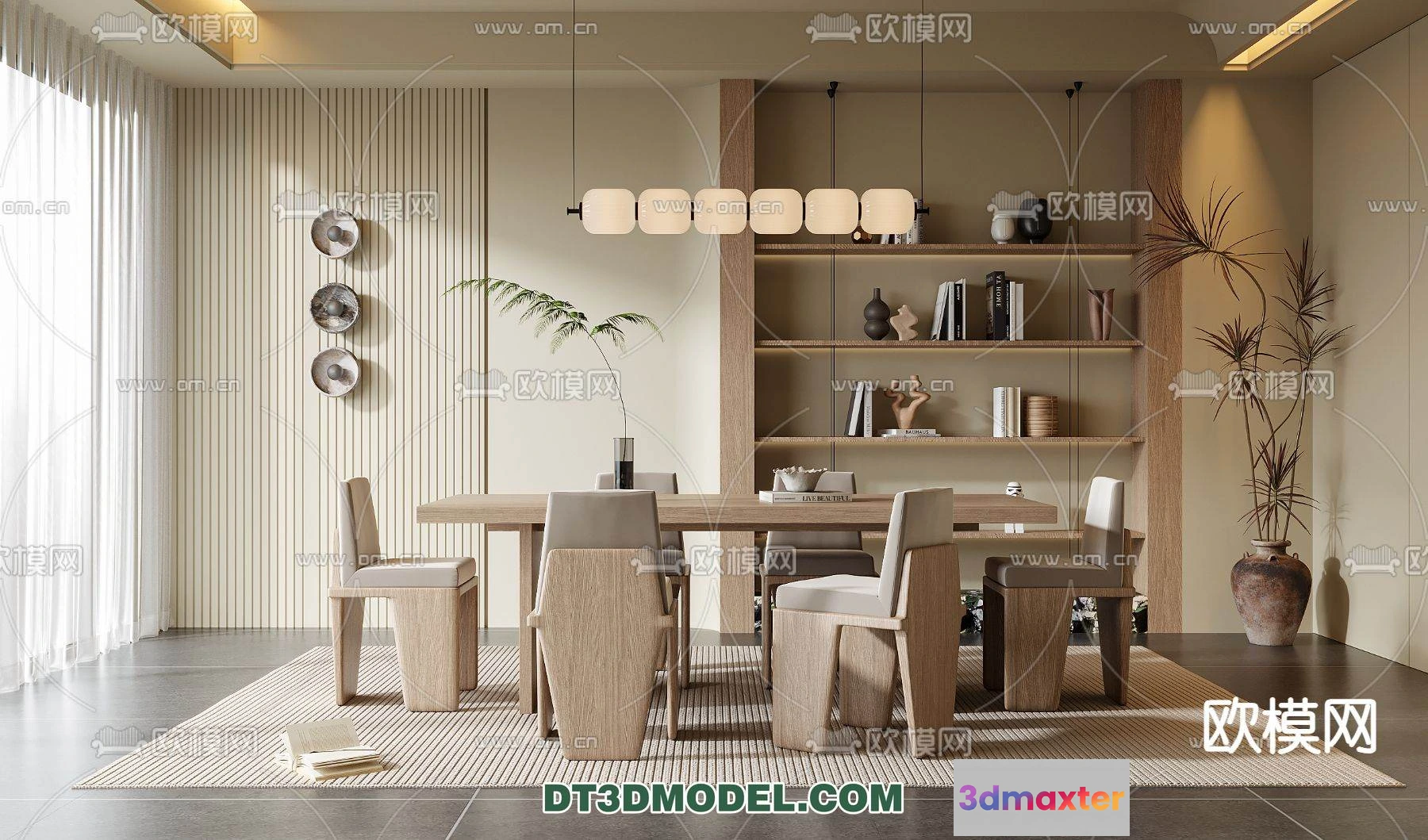3D Models / 3D Scenes / Interior / Dining Room / WABI SABI STYLE 3D MODELS – DINING TABLE – 0159