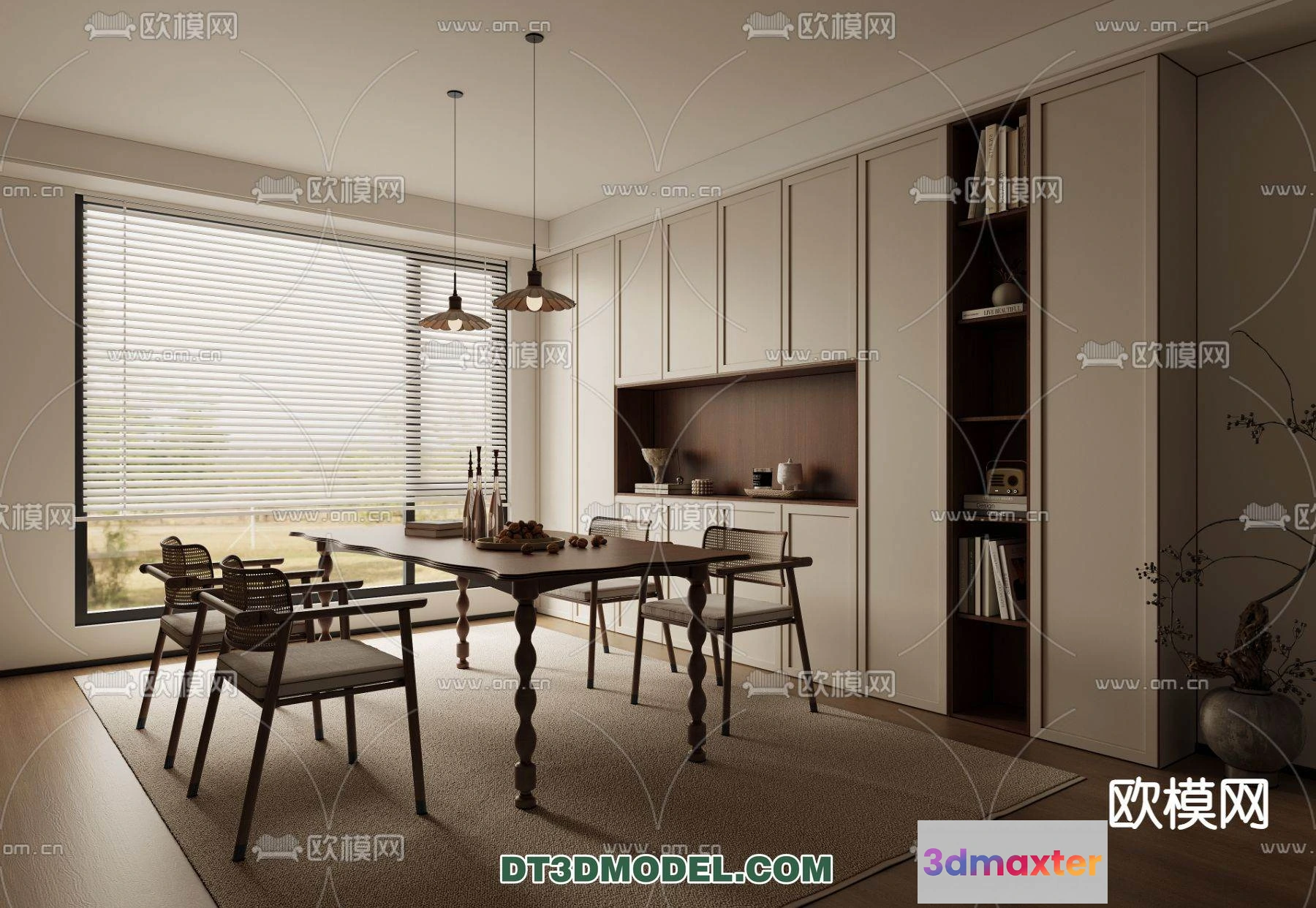 3D Models / 3D Scenes / Interior / Dining Room / WABI SABI STYLE 3D MODELS – DINING TABLE – 0164