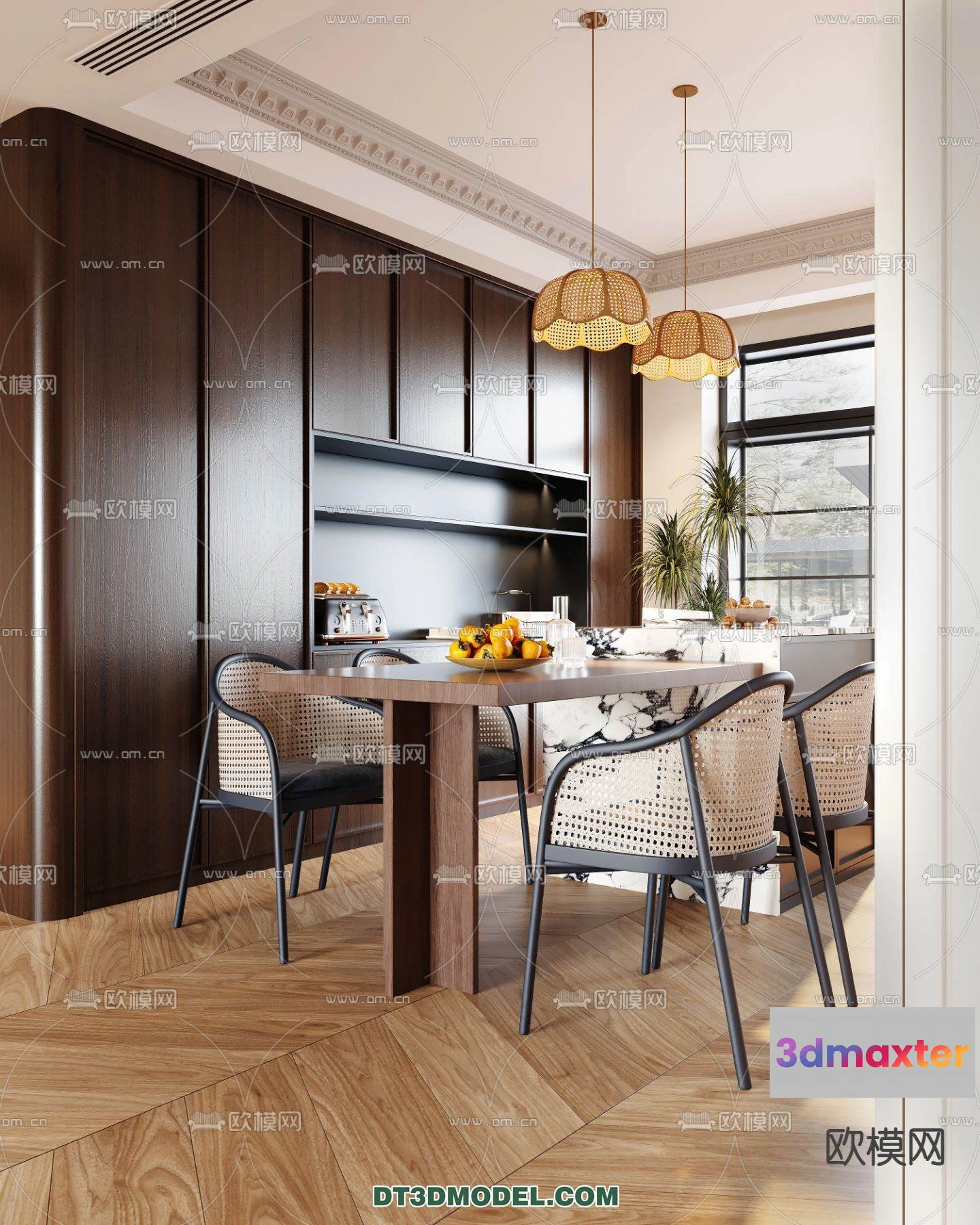 3D Models / 3D Scenes / Interior / Dining Room / WABI SABI STYLE 3D MODELS – DINING TABLE – 0181