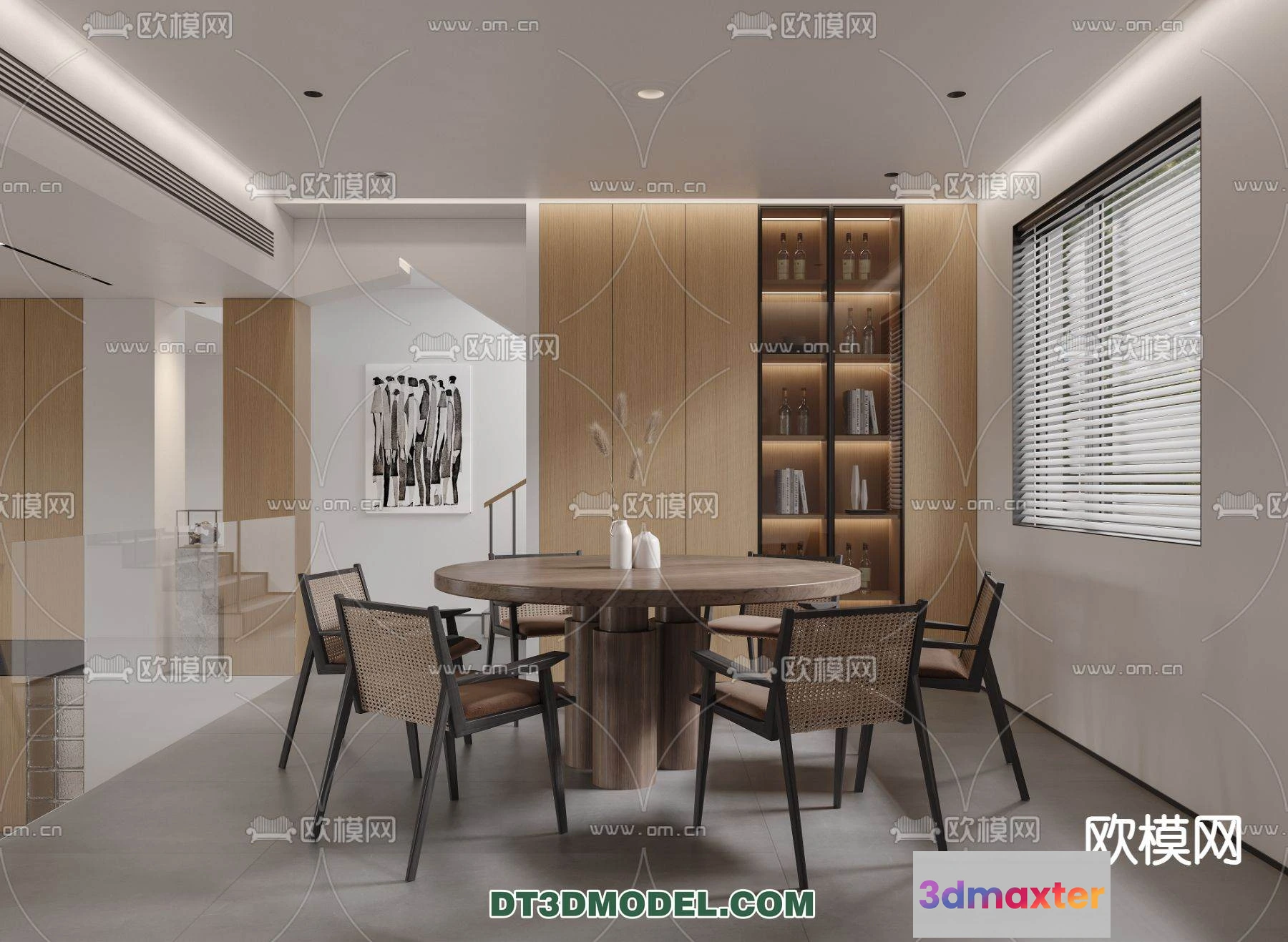 3D Models / 3D Scenes / Interior / Dining Room / WABI SABI STYLE 3D MODELS – DINING TABLE – 0194