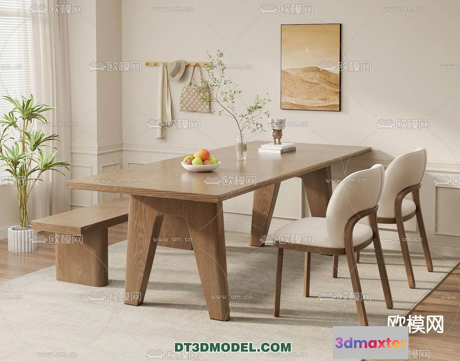 3D Models / 3D Scenes / Interior / Dining Room / WABI SABI STYLE 3D MODELS – DINING TABLE – 0208