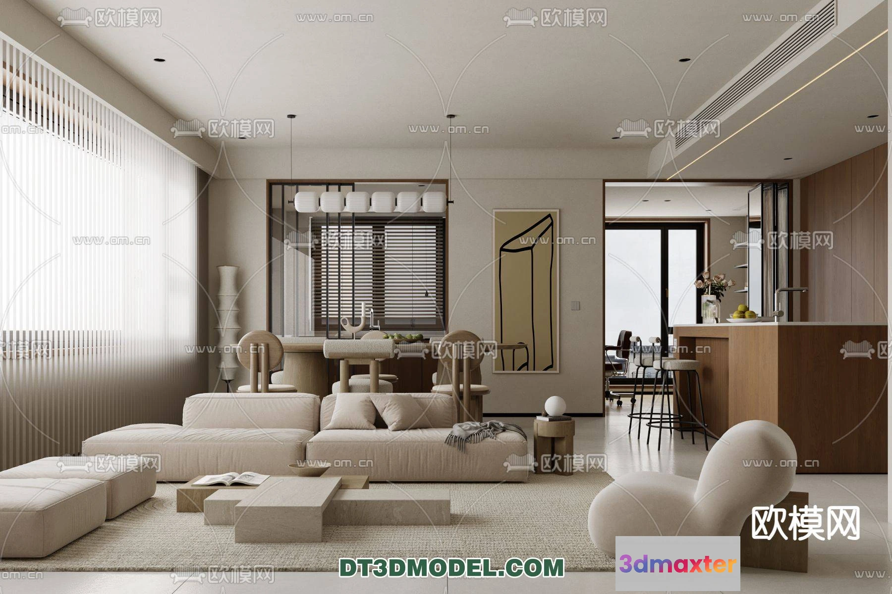 3D Models / 3D Scenes / Interior / Living Room / WABI SABI STYLE 3D MODELS – LIVING ROOM – 0019