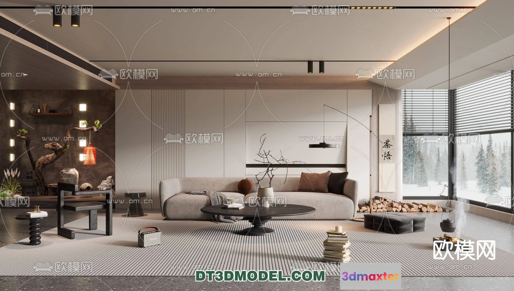 3D Models / 3D Scenes / Interior / Living Room / WABI SABI STYLE 3D MODELS – LIVING ROOM – 0067