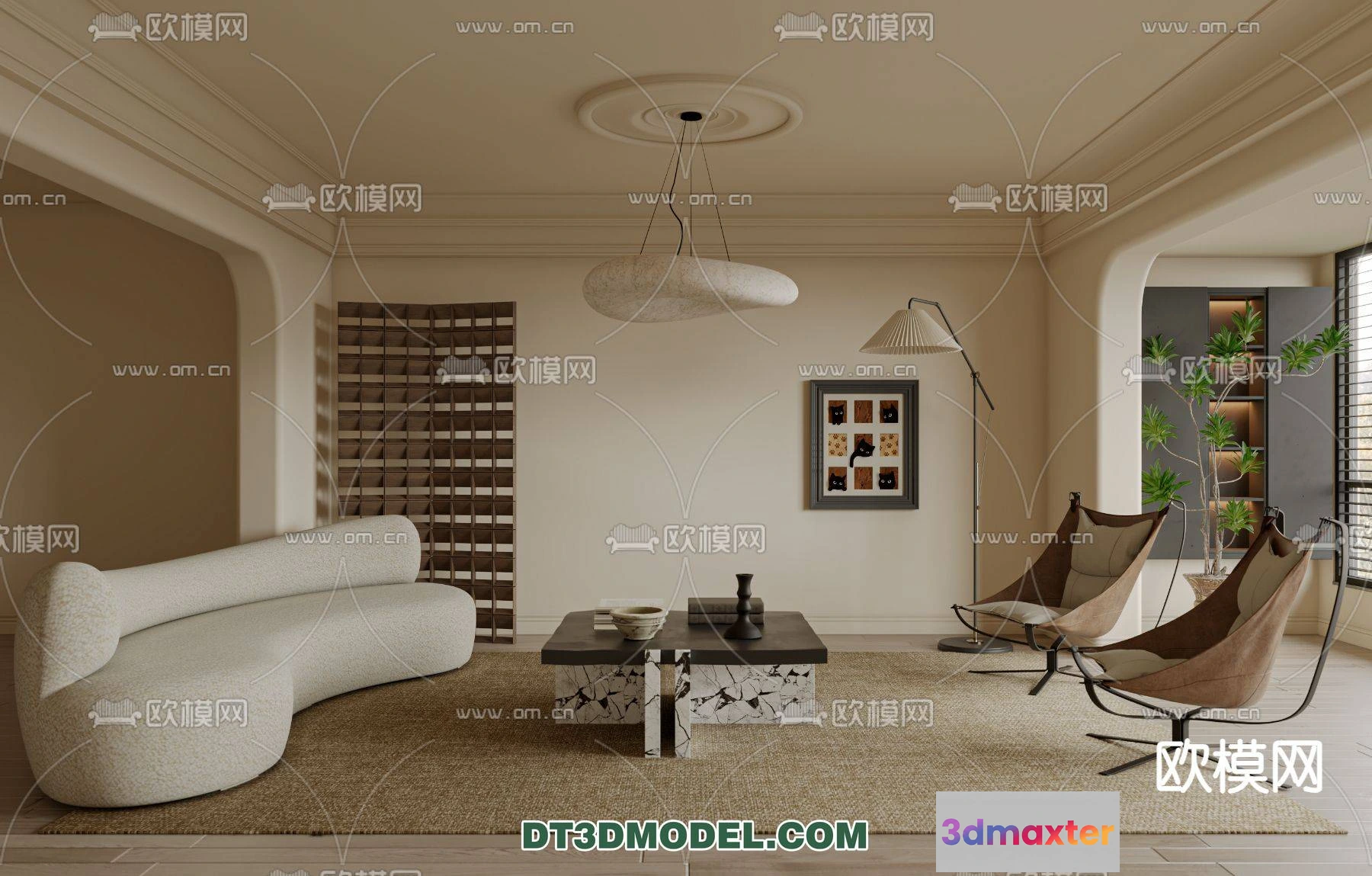 3D Models / 3D Scenes / Interior / Living Room / WABI SABI STYLE 3D MODELS – LIVING ROOM – 0077